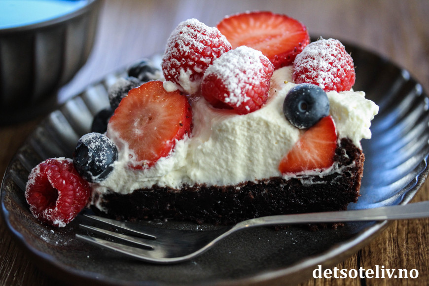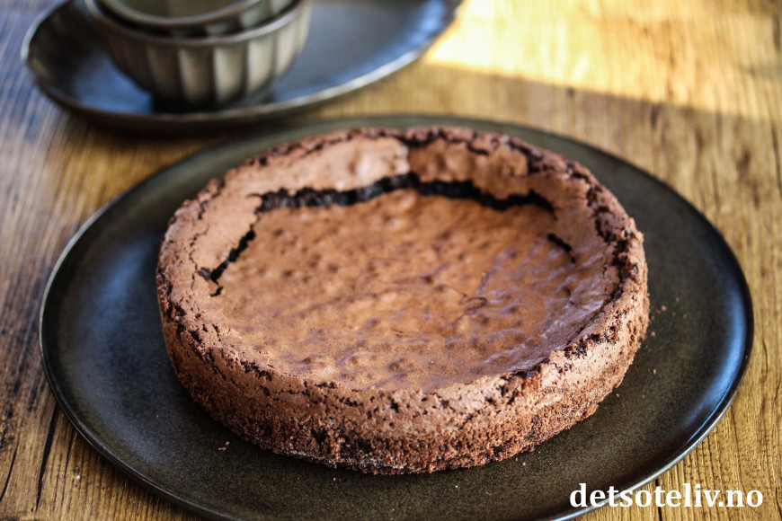 ♥ Jeg liker å steke kaken litt kortere (ca. 20 minutter), og synes da at kaken får passe konsistens etter å ha blitt skikkelig avkjølt i kjøleskapet. Den kan godt stå i kjøleskapet over natten før du tar den ut av formen.