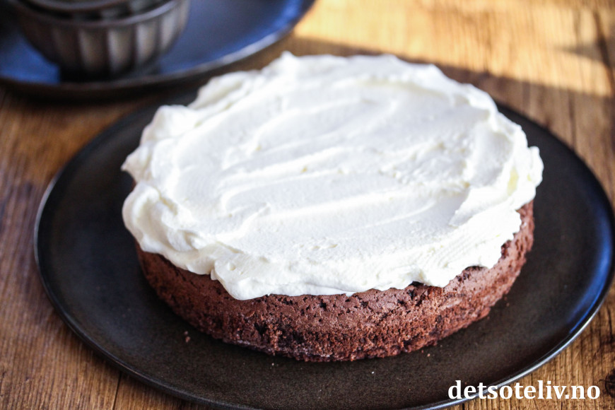 ♥ Kaken må dessuten være kald før du dekker med pisket krem, ellers smelter kremen og blir rennende.