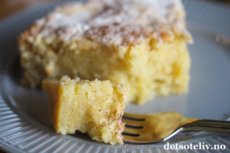 Sinnsykt god kake, en ny favoritt. Tror det holder med 1,5 ts vaniljesukker.