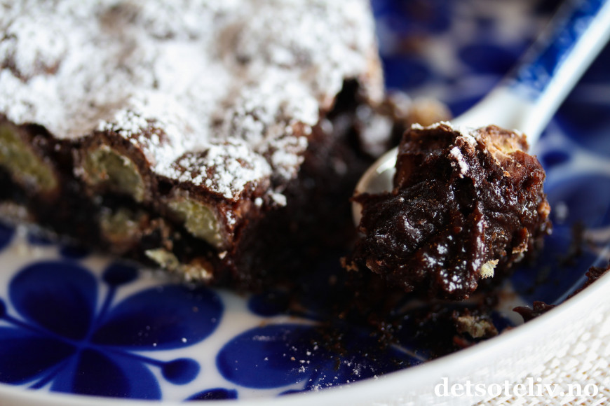 ♥ Poenget med kladdkaker er at de bare skal røres raskt sammen og at de ikke skal være helt gjennomstekte. Vær oppmerksom på at deigen virker nokså tykk og seig, og det er slik den skal være. Vær nøye med å ikke steke kaken for lenge, den skal være bløt og klissete i kjernen.