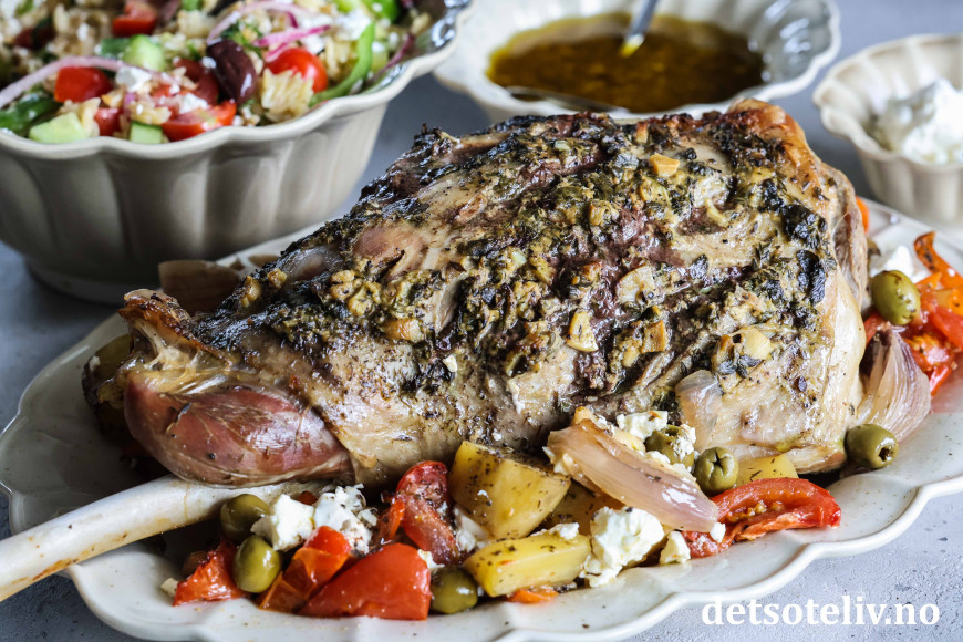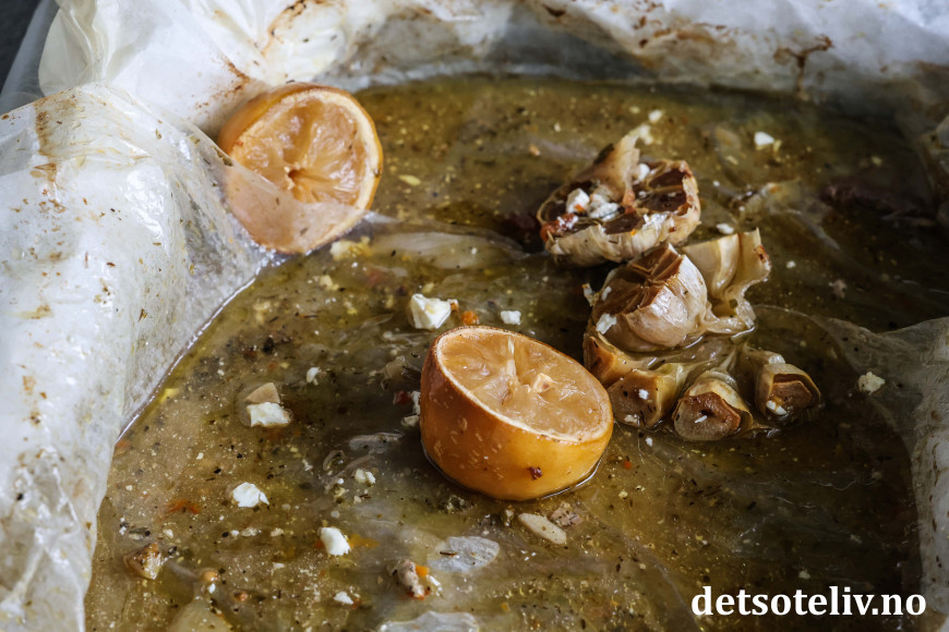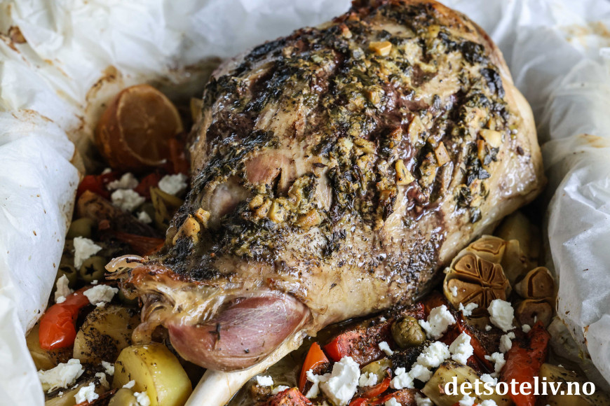 ♥ Jeg brukte her et helt lammelår med ben på 3 kg. Som nevnt kan du lage Kleftiko med stykker av lammekjøtt i stedet for helt lammelår. Bruk for eksempel lammebog eller lammelår i skiver.
