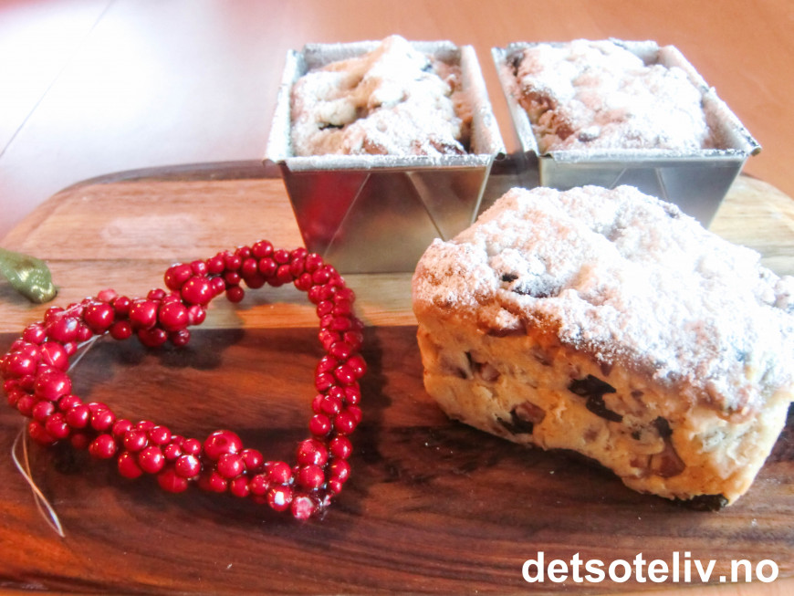 I desember var det en jente som spurte meg på facebook om jeg hadde oppskrift på "Stollen" i porsjonsformer. Og ja, faktisk hadde jeg det - funnet i et tysk kakemagasin som jeg såvidt rakk å snappe med meg på flyplassen i München under en travel mellomlanding da jeg dro til India i november (jeg har visst kake på hjernen overalt jeg er..:-)). Det ble visst mindre baking på meg i desember i år enn jeg hadde tenkt, men her er nå uansett oppskriften, Camilla, om enn alt for sent, så håper jeg du og andre kan ha glede av den kanskje til neste jul...:-) Eller forresten - "Stollen" smaker jo godt hele året!