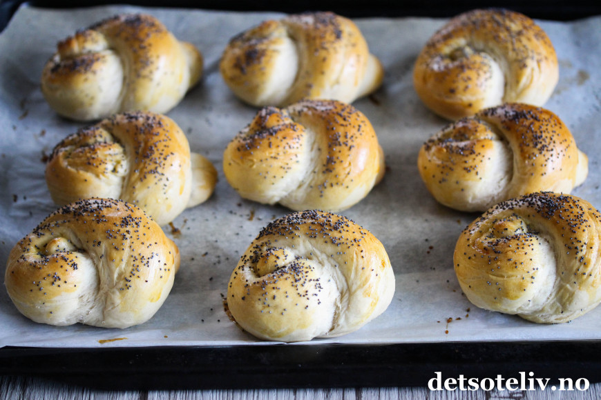De fleste barn liker nok rundstykkene best uten frø, men for de voksne er det fint å lage et brett med valmuefrø på.