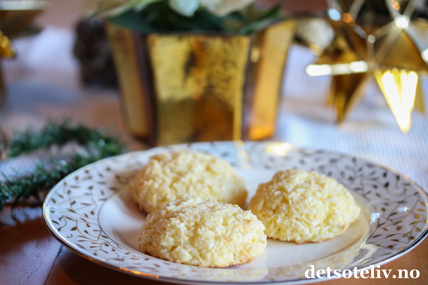 En ny favoritt som vi laget for 2. året på rad nå. Mye bedre enn vanlige kokosmakroner siden de er så saftige. Takk for oppskrift.