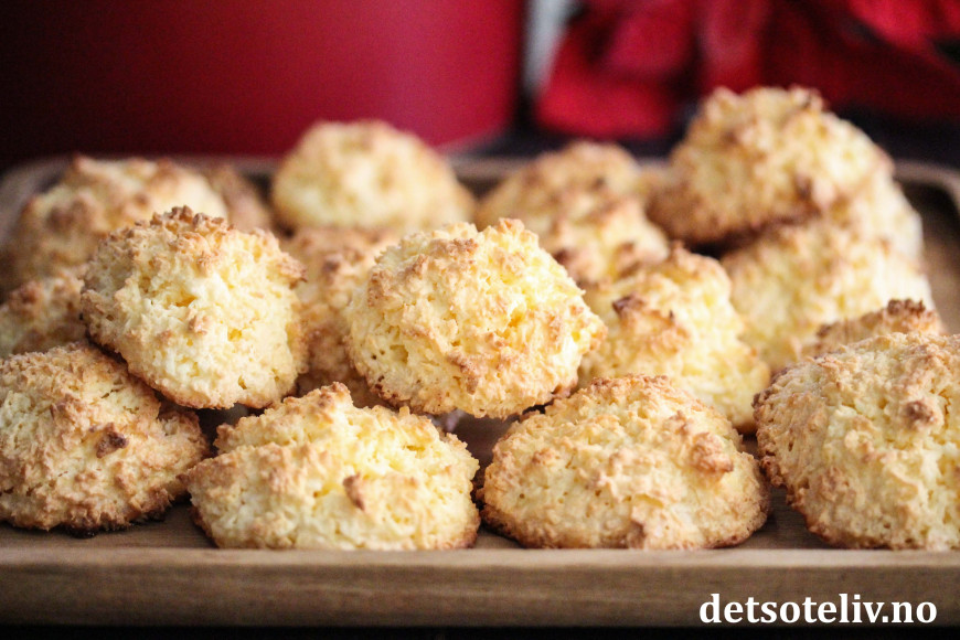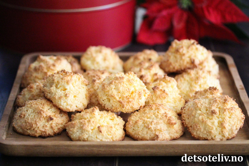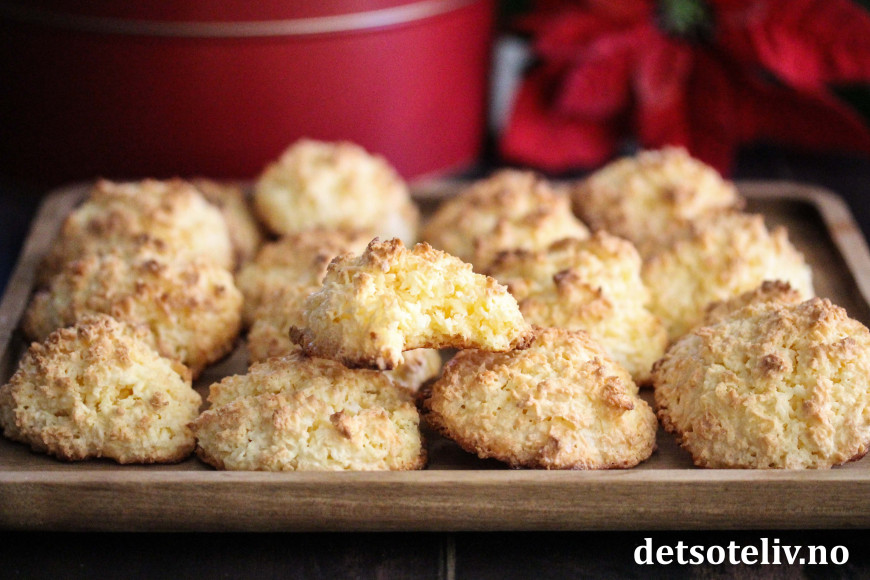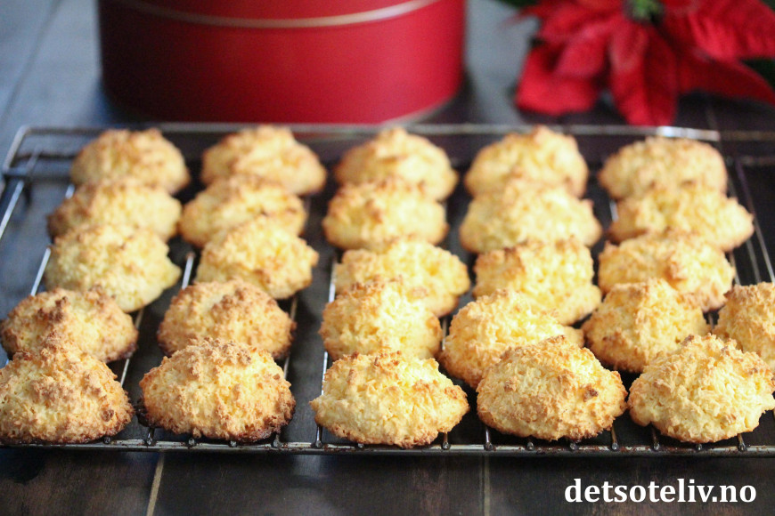Kokosmakroner er superpopulære å bake til jul! Du finner flere kjempegode varianter HER på Det søte liv.