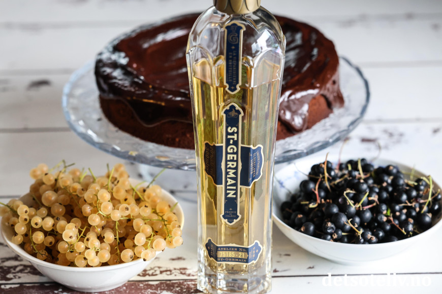 ♥ Jeg har brukt litt hylleblomstlikør i kakerøren, som gir veldig god smak på konfektkaken. Hylleblomstlikøren heter St. Germain og fås kjøpt på polet. Du kan bytte ut hylleblomstlikør med 2 ss annen likør eller konjakk, eller du kan bruke kaffe, saft eller melk dersom du ønsker noe alkoholfritt.
