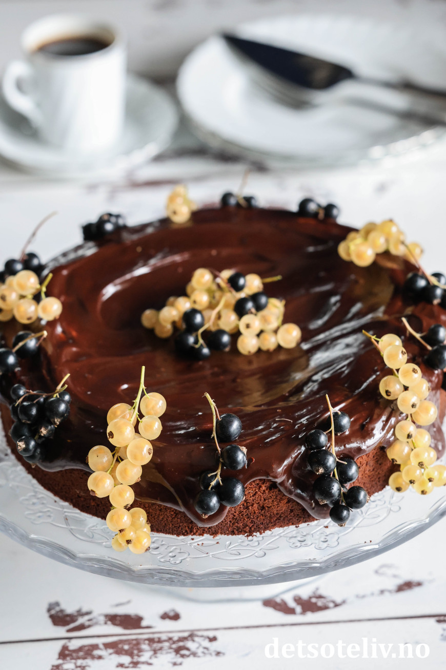 ♥ Jeg har brukte hvite rips og solbær som pynt. Disse kan du bytte ut med andre typer bær hvis du vil. Se for eksempel Konfektkake med bær og Konfektkake med bær og druer som er basert på samme oppskrift som denne, men med annen pynt.