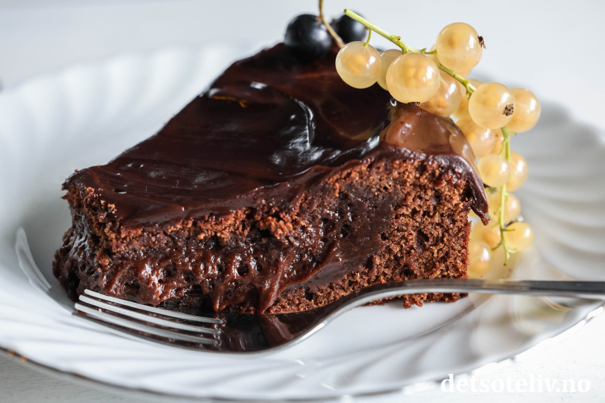 En mørk og deilig konfektkake med en bløt og klissete kjerne! 😍