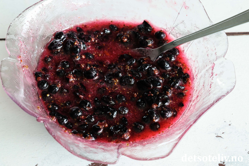 Solbærene gir både deilig smak og lekker farge på solbærkremen!