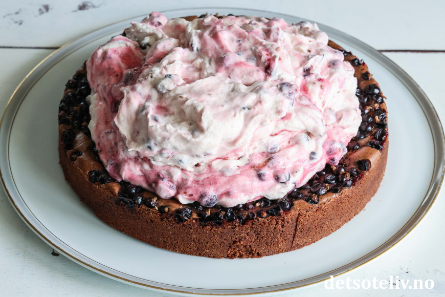 Fordel solbærkremen over hele kaken i et tykt lag.