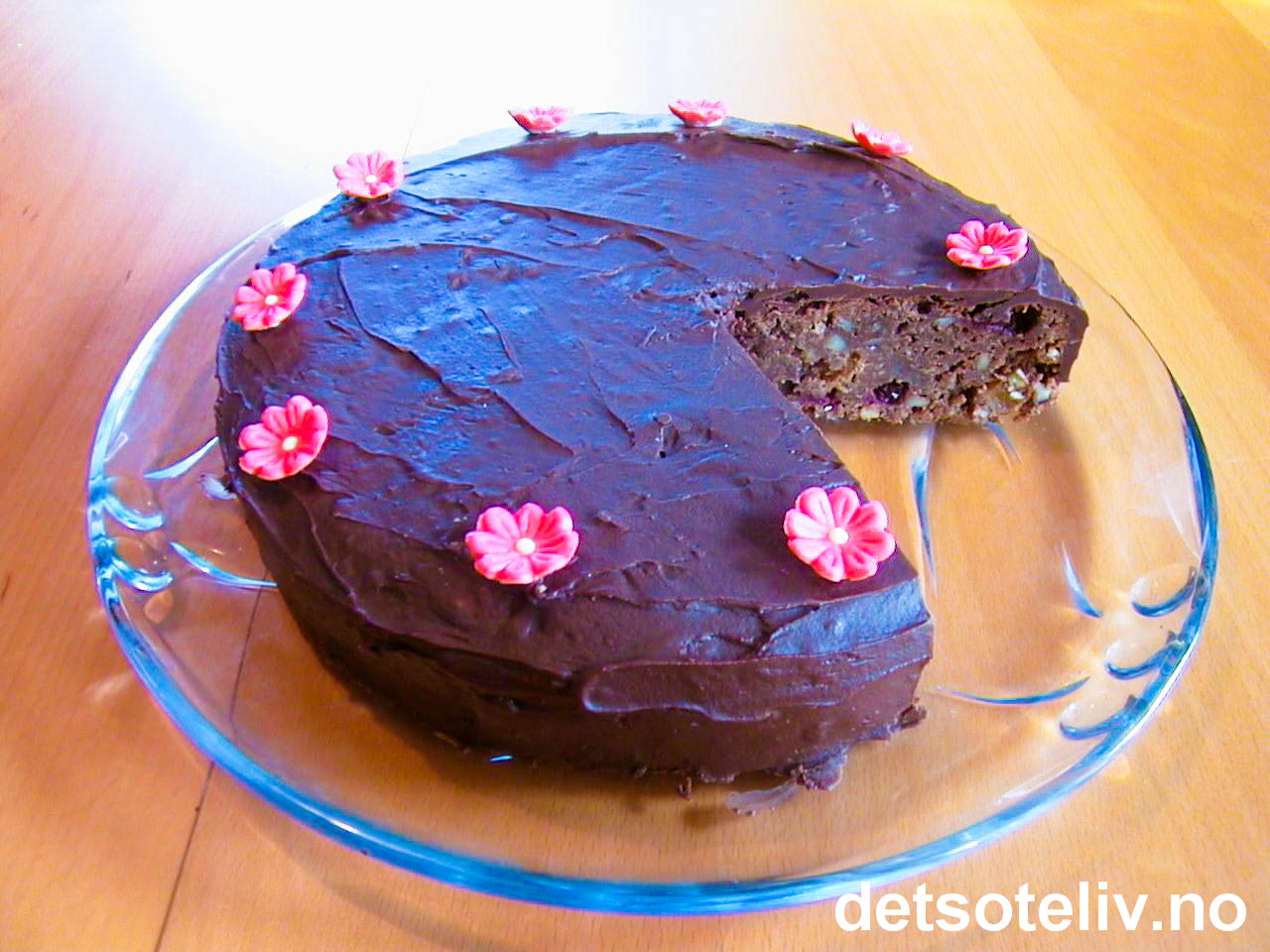 Bruk gjerne mørk kokesjokolade med 70% kakaoinnhold i kakedeigen. Til glasuren passer det best med vanlig kokesjokolade.