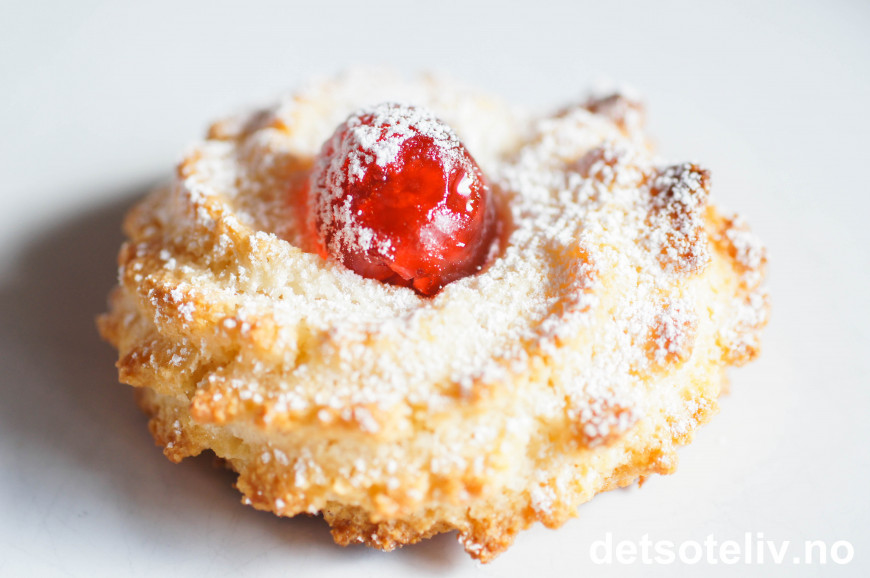 Avkjøl de stekte kakene. Sikt over melis før servering.