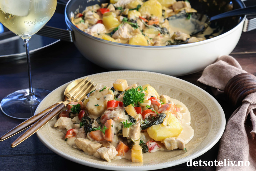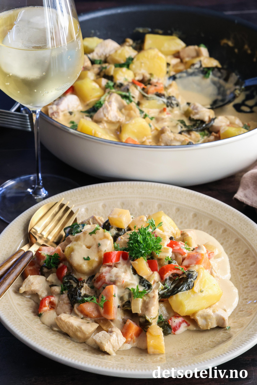 Kjempegod gryterett med kylling, poteter og nydelig saus!