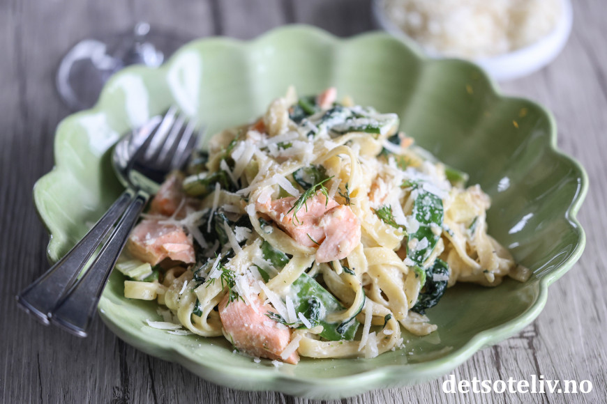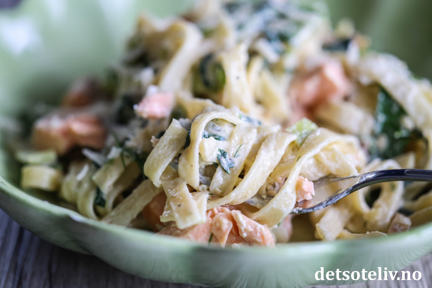 Veldig god, kremet pastarett med laks!
