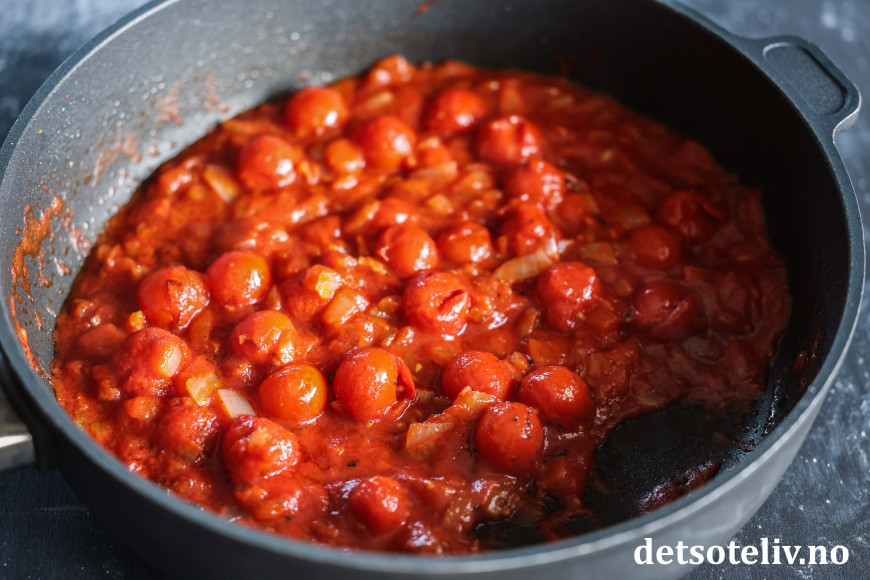 ♥ Hermetiske cherrytomater gir ekstra søt og god tomatsmak på sausen.