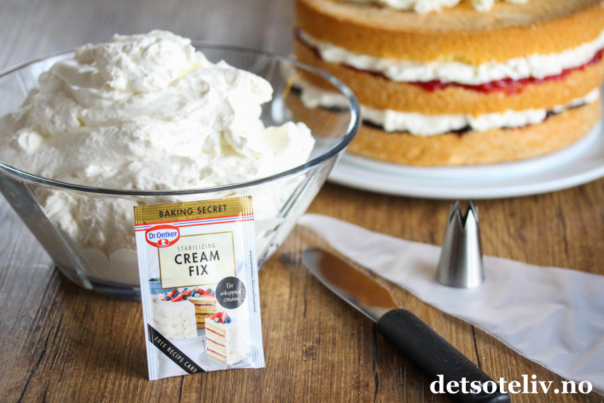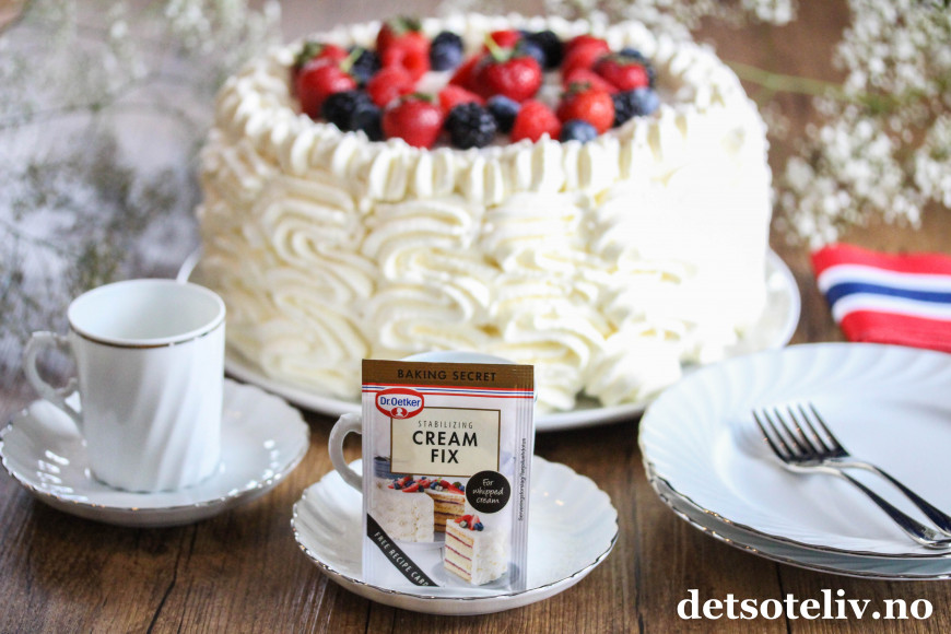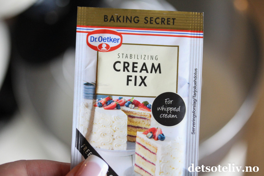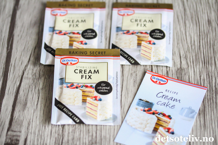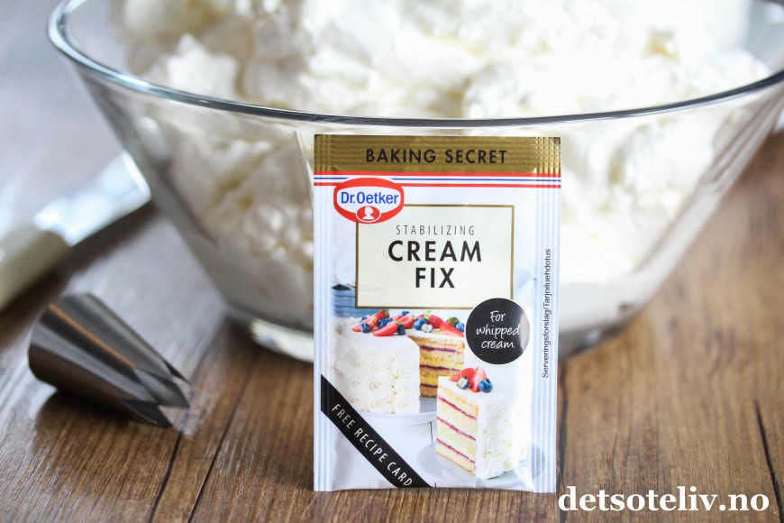 Faren med å sette en flott kremkake på bordet er at en myk og deilig fløtekrem kan bli litt løsere og miste fasongen etter en stund. Et helt supert hjelpemiddel for å unngå dette er Cream Fix fra Dr Oetker, som stabiliserer kremen slik at den tåler å stå lenger.