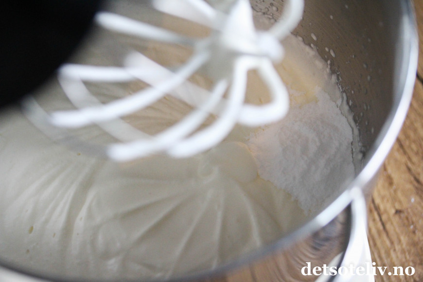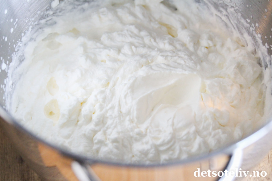 Pisk litt videre til kremen er stiv (men pass nøye på å stoppe i tide så kremen ikke blir kornete).