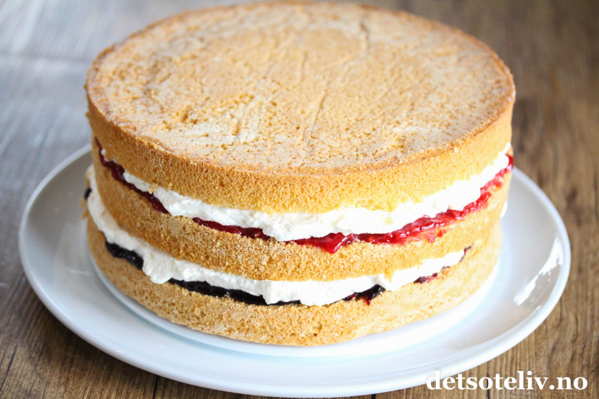 ♥ Kaken får best smak om du bruker hjemmelaget blåbærsyltetøy og hjemmelaget bringebærsyltetøy. Bruker du kjøpte varianter, vær nøye på å bruke syltetøy med høyt innhold av bær.