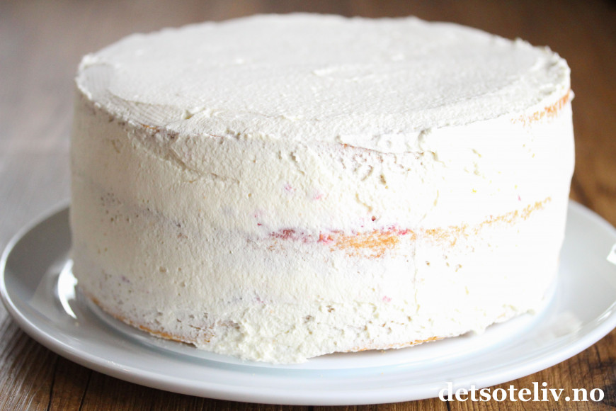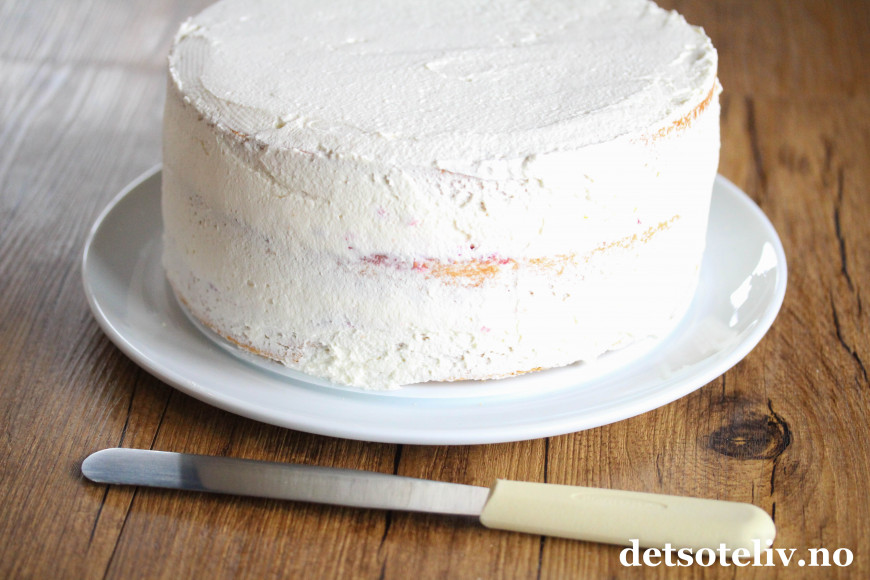 Smør eventuelle rester av fløtekrem rundt kaken.