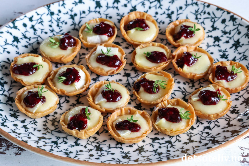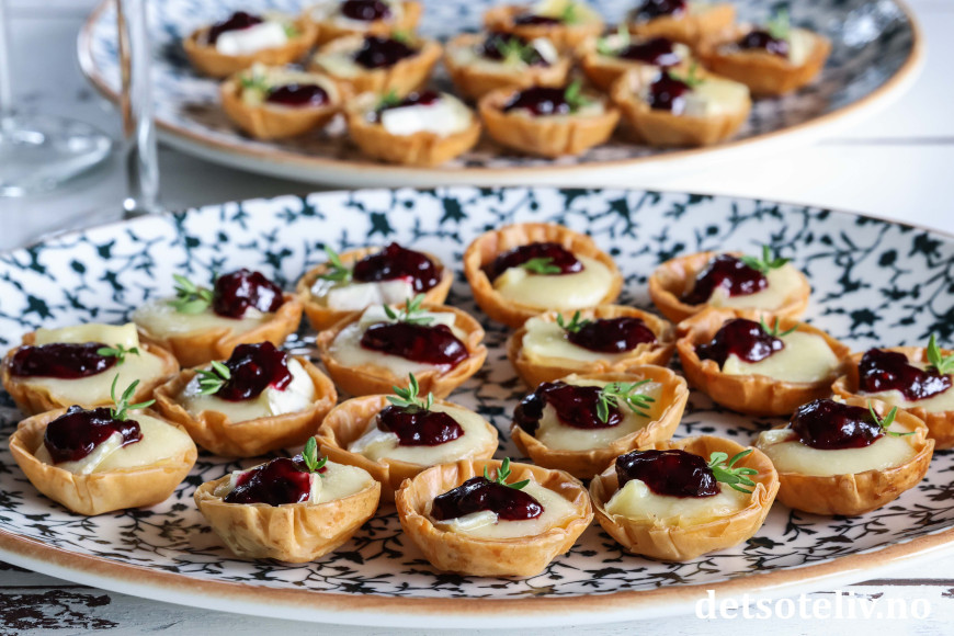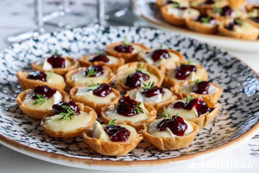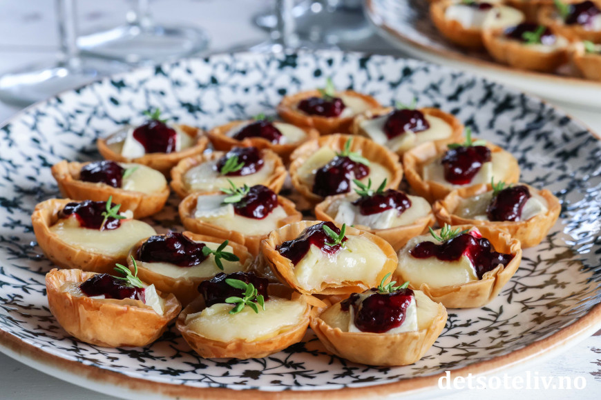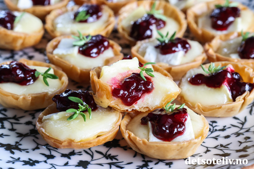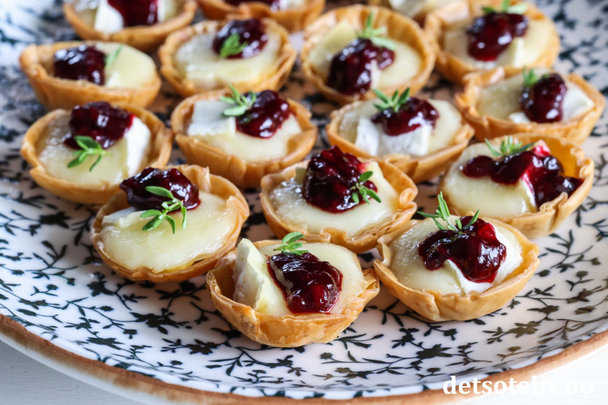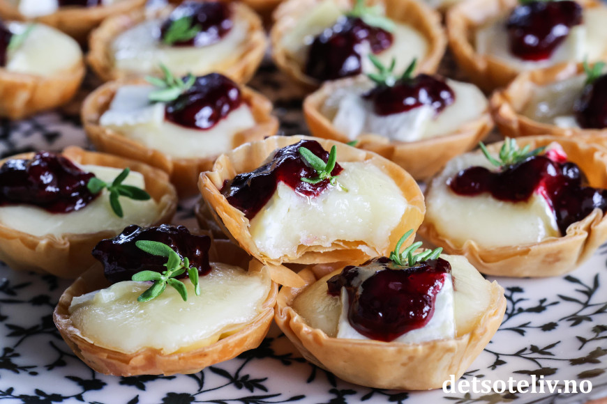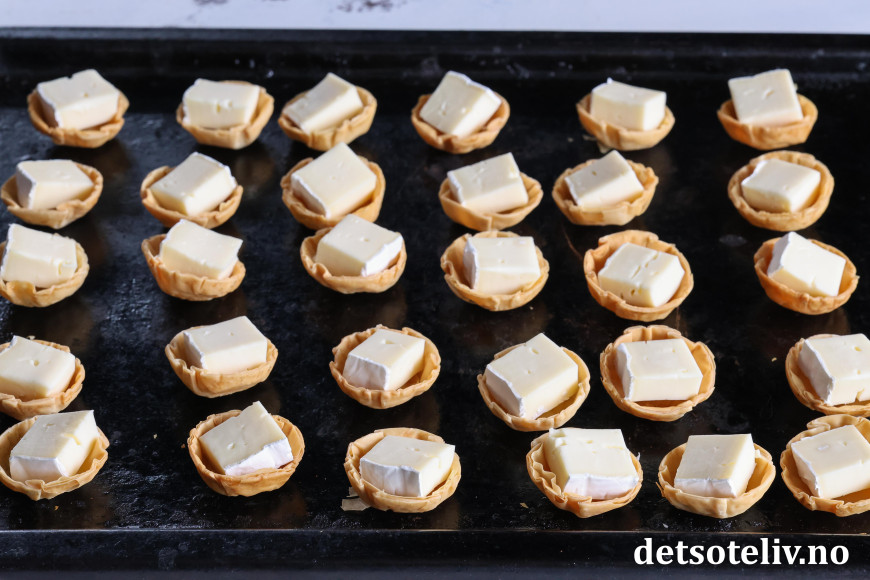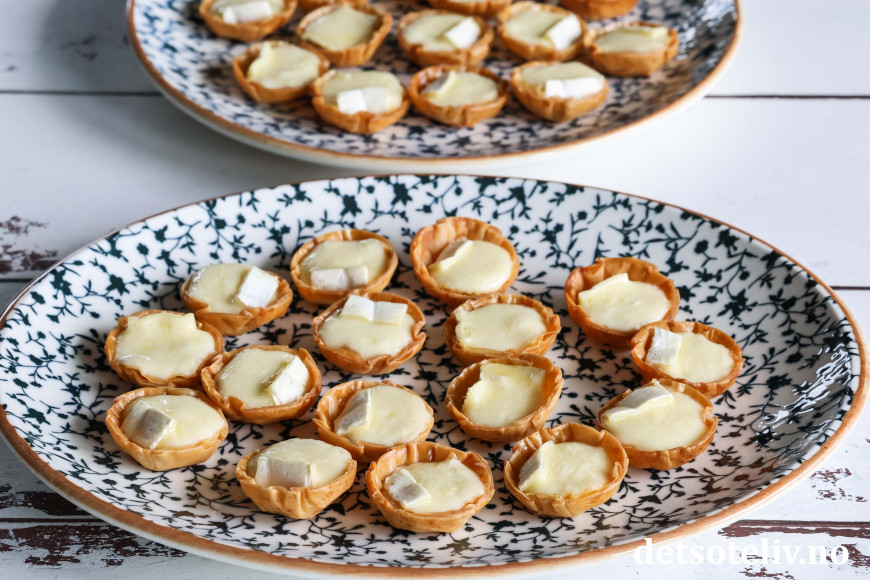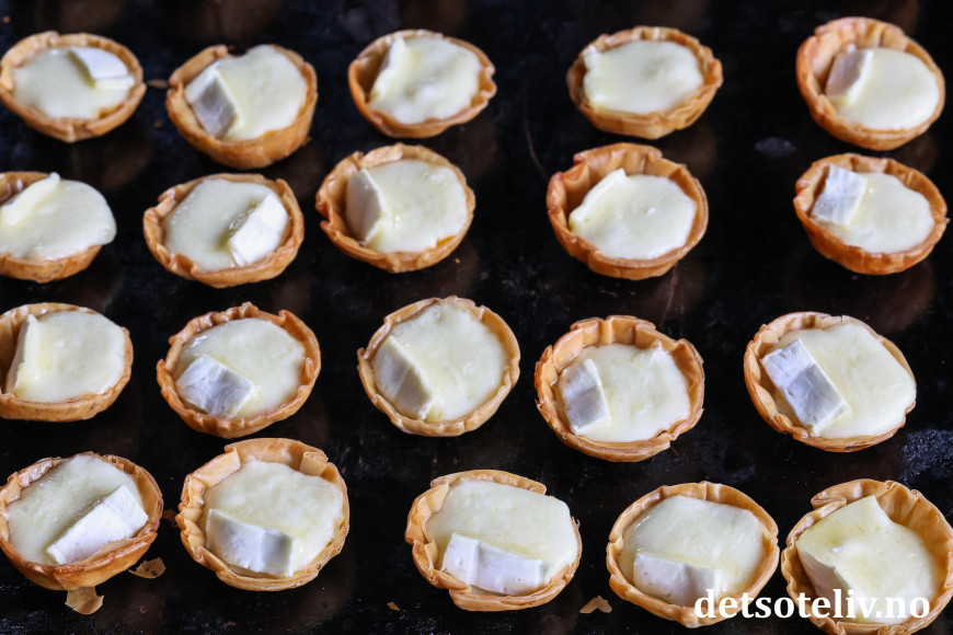Her har jeg fylt krustader med Brie og deretter satt dem en kort stund i ovnen slik at osten smelter.