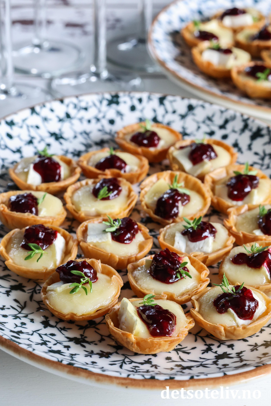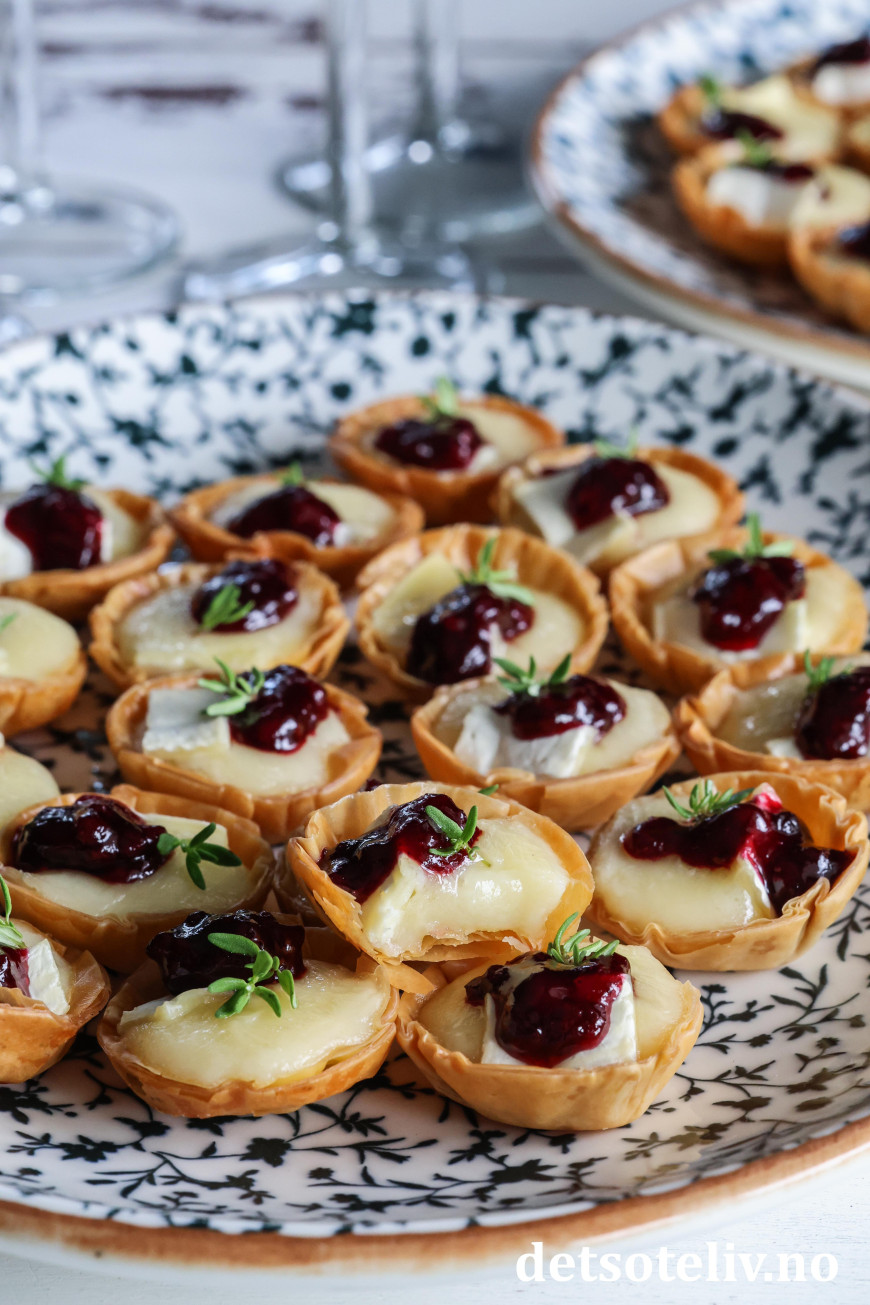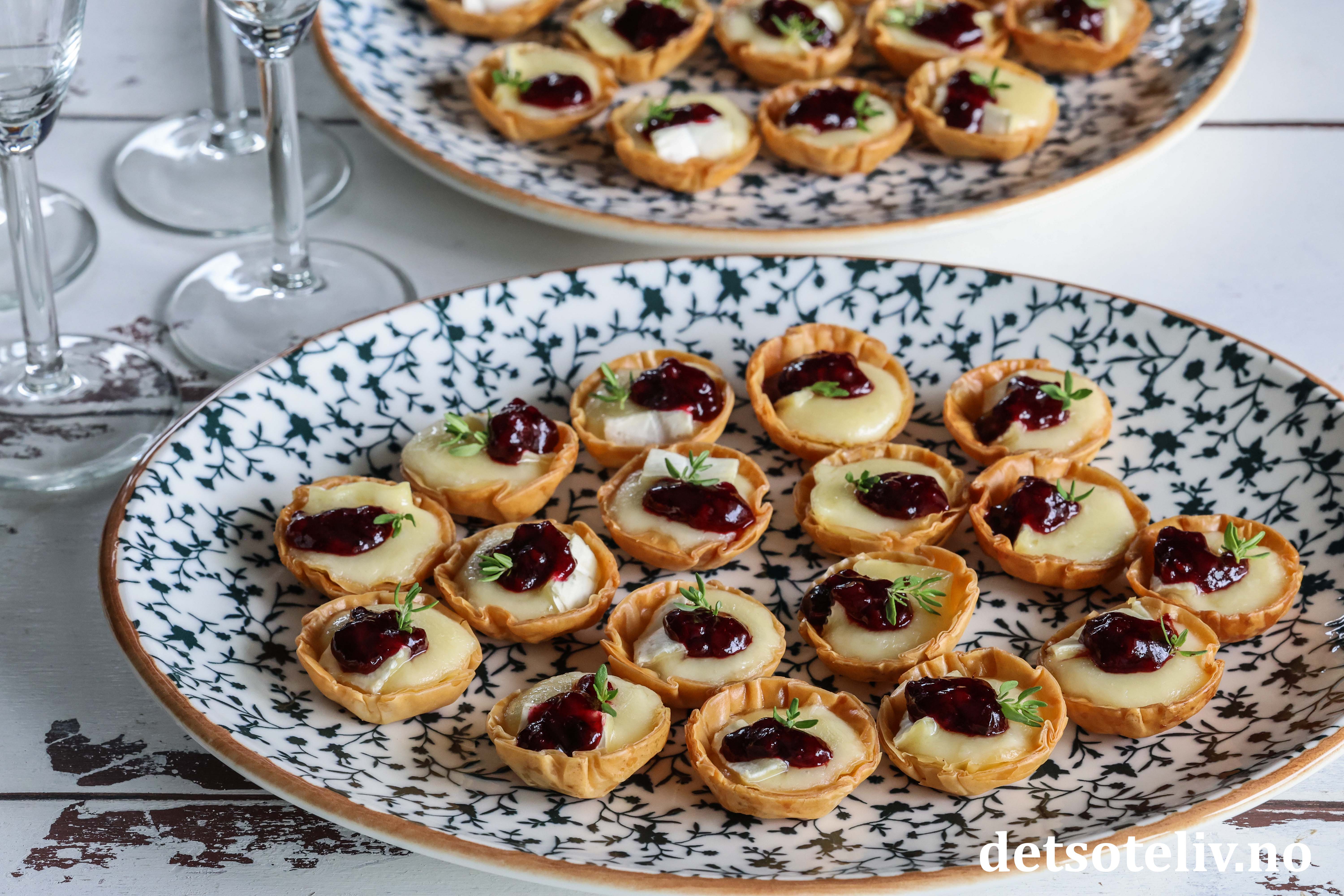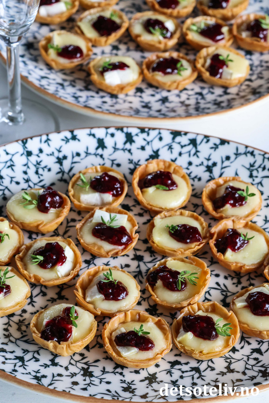 Her har jeg fylt krustader med Brie og deretter satt dem en kort stund i ovnen slik at osten smelter.