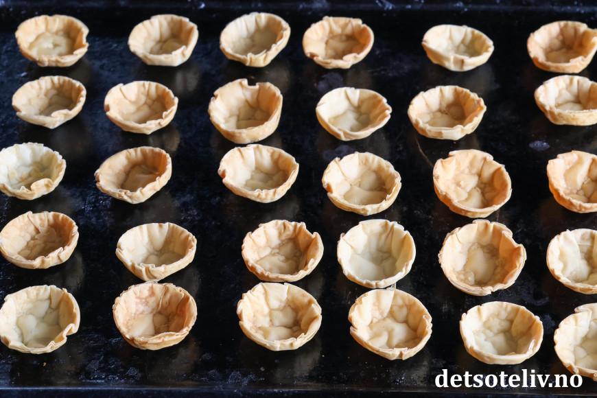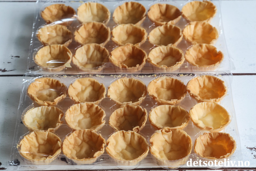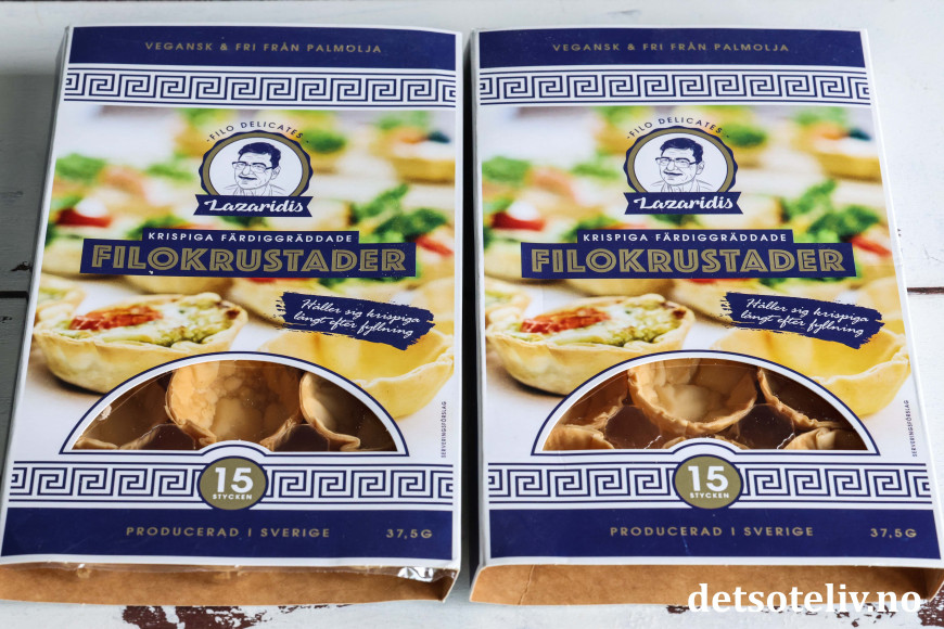 ♥ Krustader fås kjøpt i velassorterte matvarebutikker i litt ulike varianter. Jeg brukte her filokrustader (kjøpt hos Coop Mega).