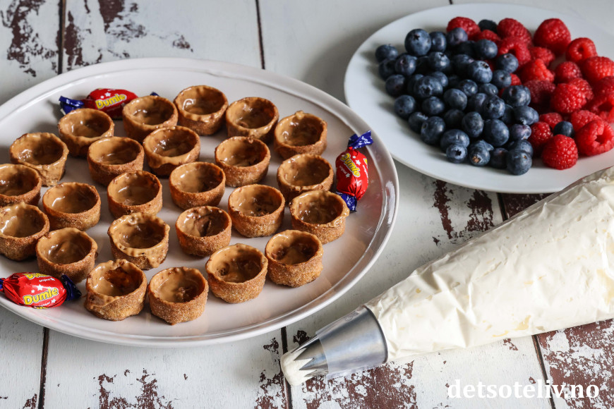 ♥ Du kan forberede krustader med smeltet Dumle i forveien, men krustadene bør fylles med krem og bær rett før servering. Blir de stående en stund, vil krustadene mykne av kremen.