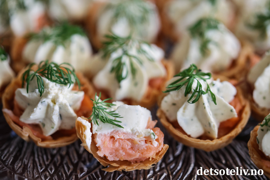 Her har jeg fylt krustader med varmrøkt laks og osten Rondelé, som er en pisket, mousseaktig kremost med smak av hvitløk og urter. Kremosten er så god på smak og luftig i konsistensen at den er perfekt å sprøyte direkte i krustadene.