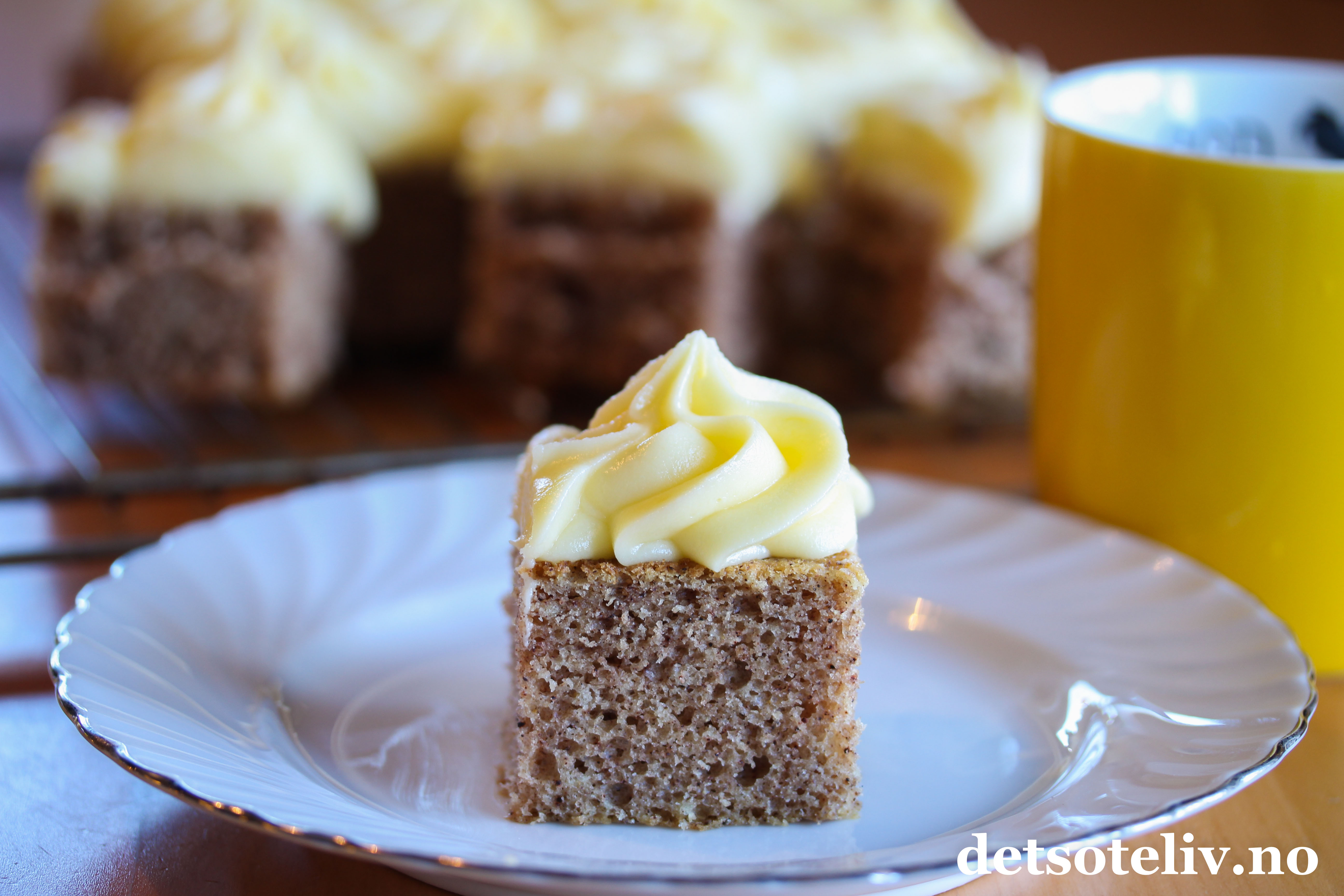 Appelsinkrem smaker nydelig til den myke krydderkaken!