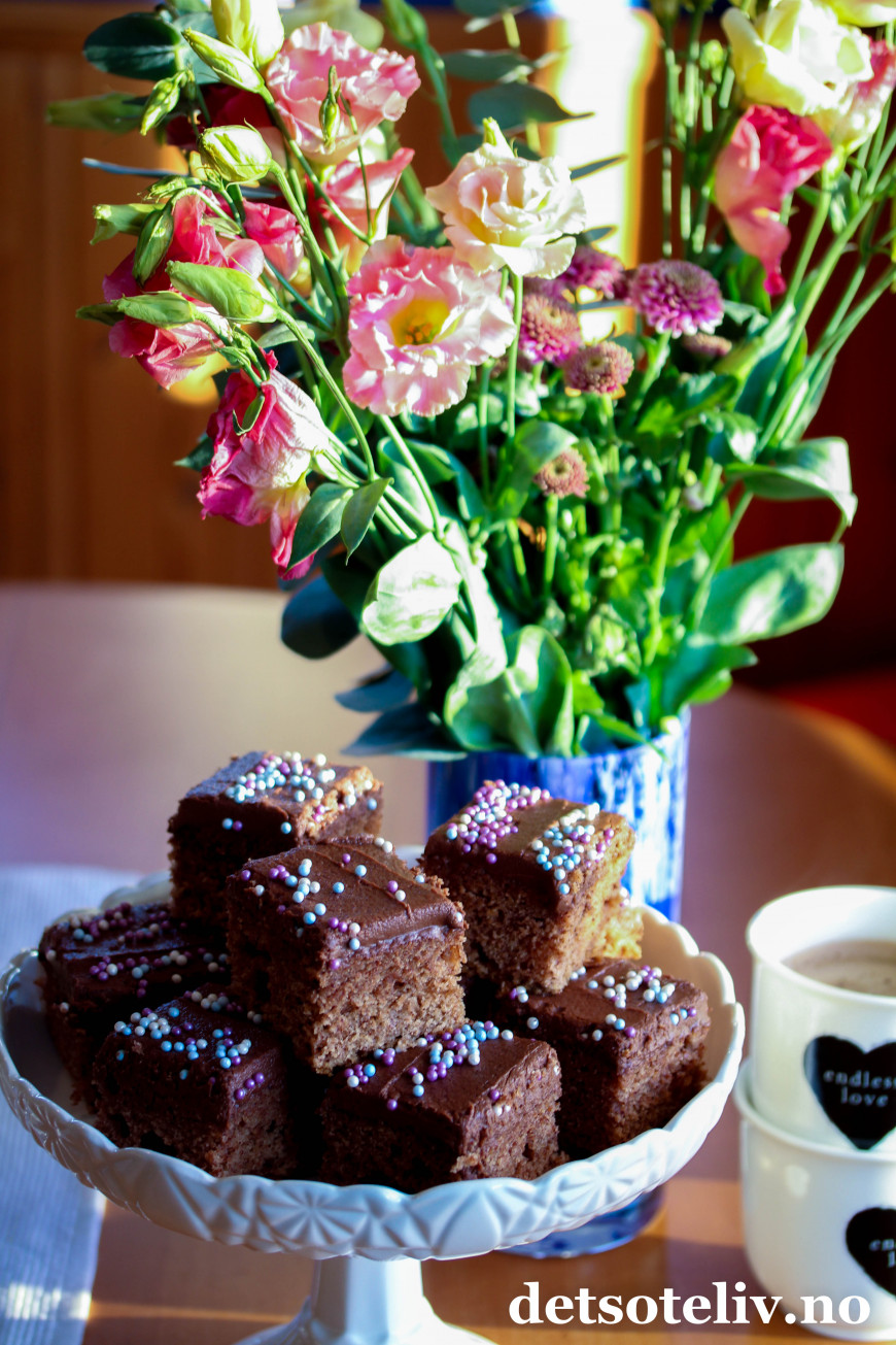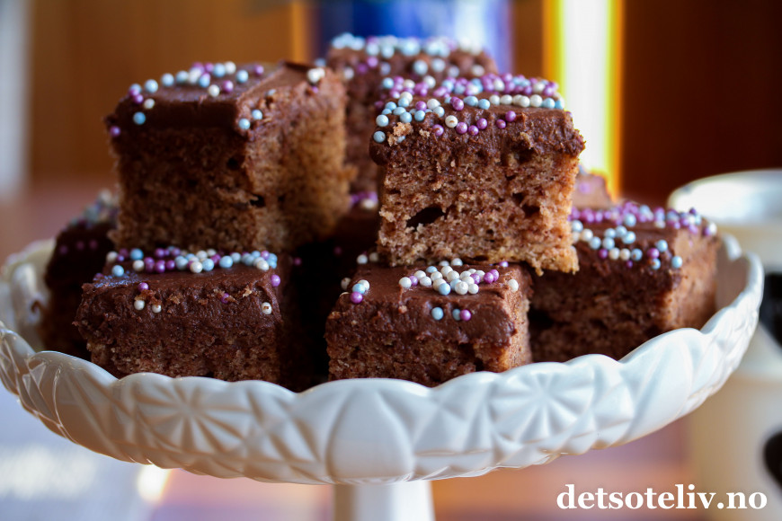 ♥ Kakestykkene holder seg myke i flere dager om de pakkes godt inn i plast. De er også kjempefine å fryse. Frys bitene gjerne først på et brett til sjokoladekremen er frossen. Da går det lett å stable kaken i fryseposer uten at kakene blir klissete.