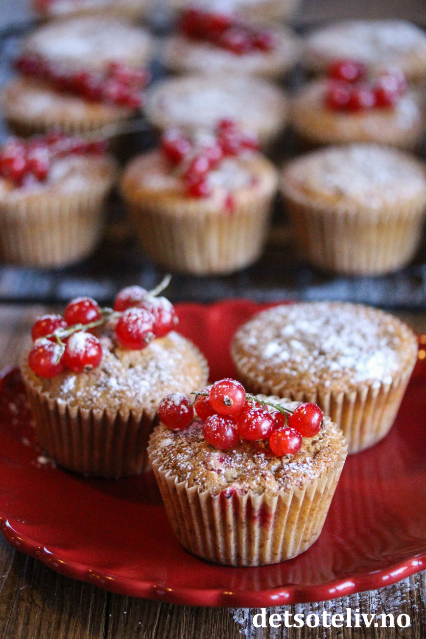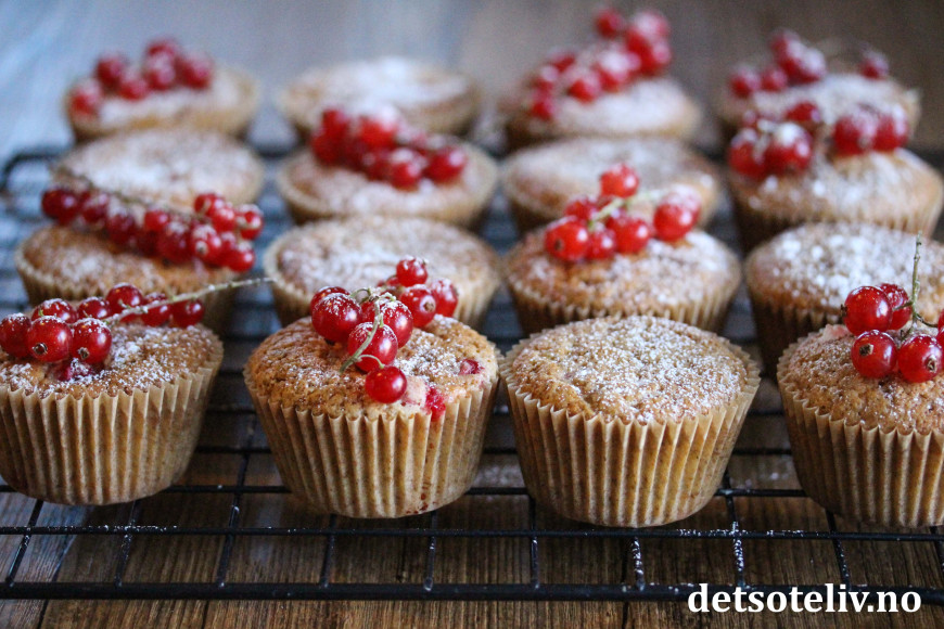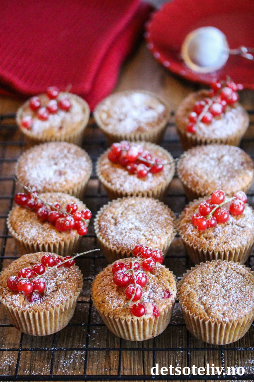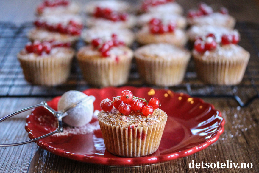 Muffinsene blir ekstra fine om du pynter med ripsklaser, men det er slett ikke nødvendig.