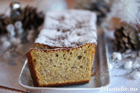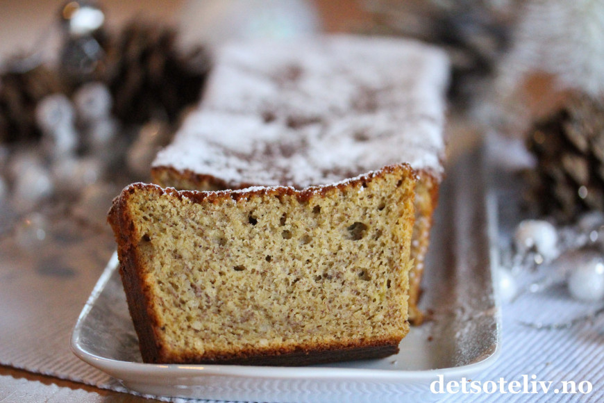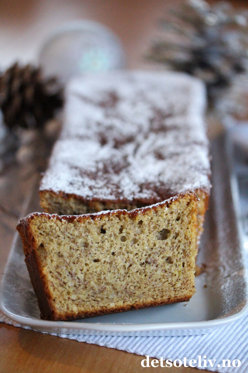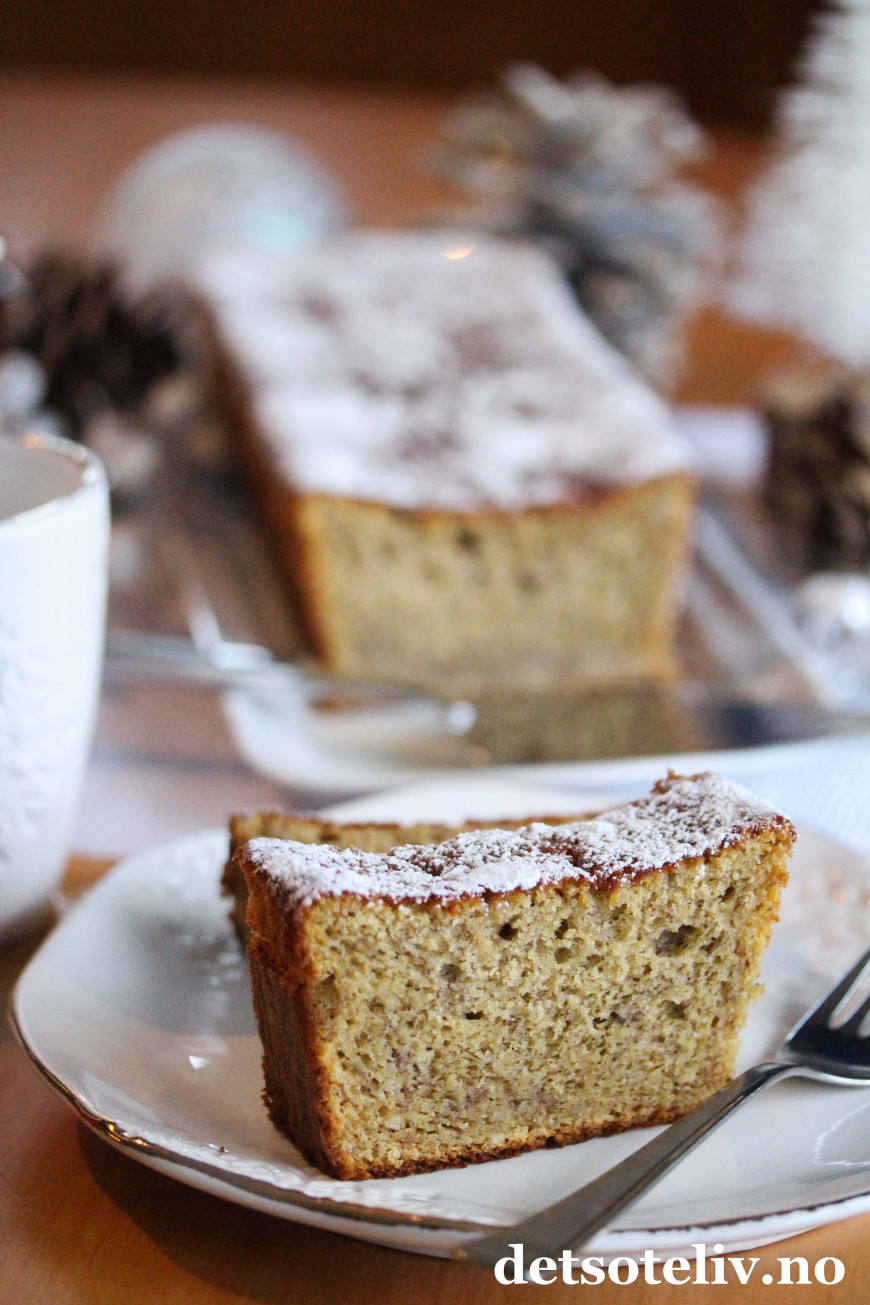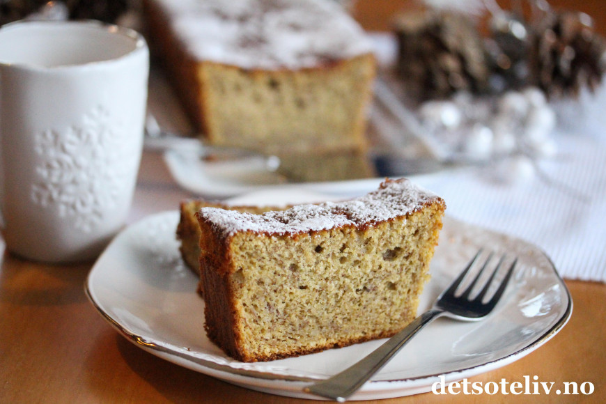 Bananene gjør kaken saftig selv om den inneholder lite smør.