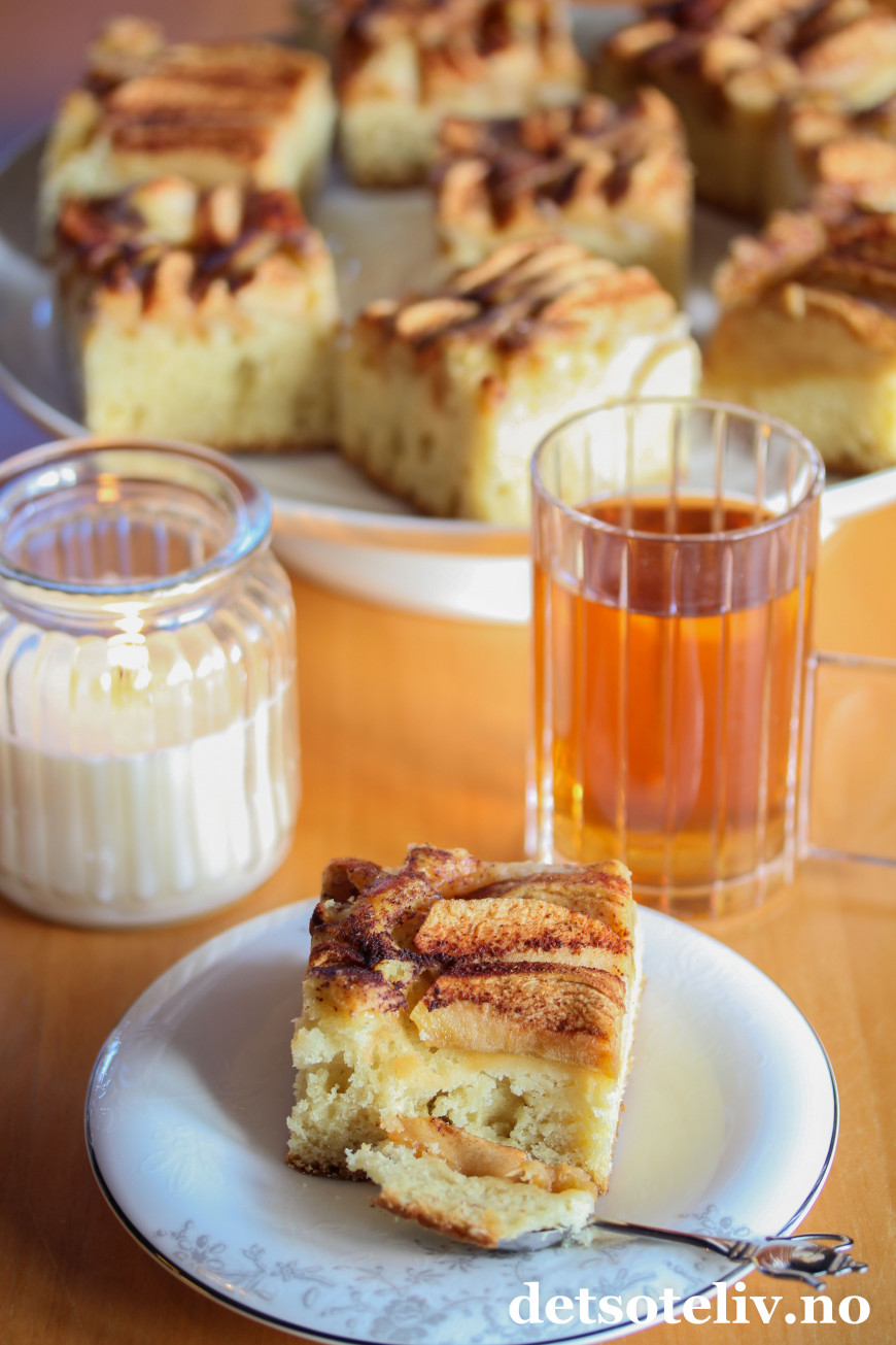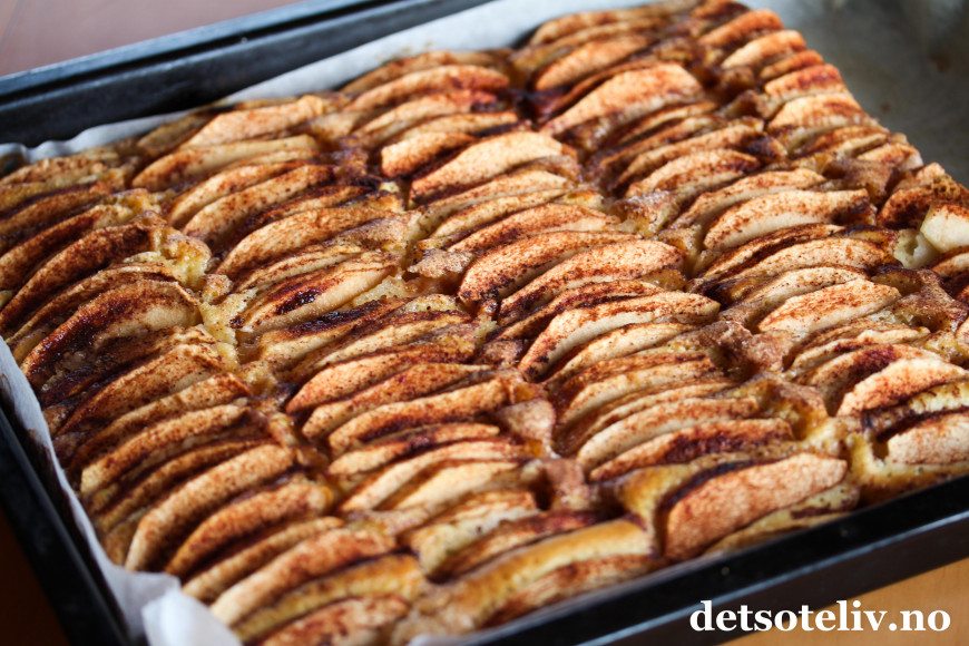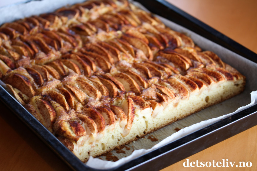 Her har du en superlettlaget og supernydelig eplekake i langpanne (uten egg)!