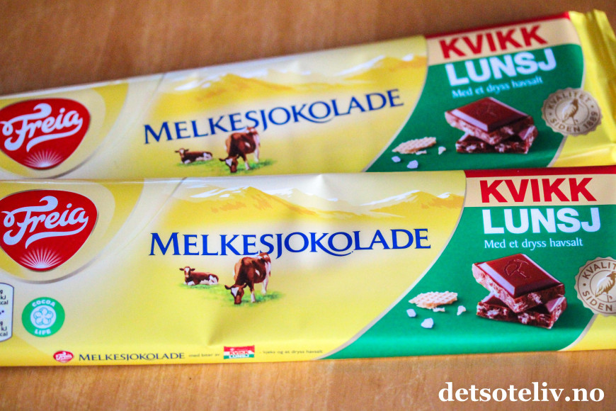 Får du ikke tak i denne sjokoladen, går det også helt greit med vanlig melkesjokolade eller vanlig type Kvikk Lunsj.