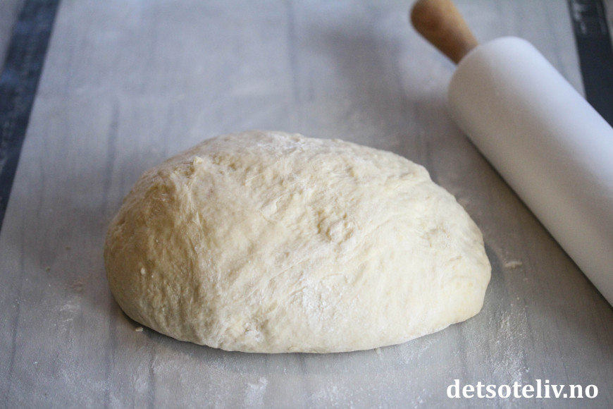 Ja, dette er boller alle vil like! :-) Ikke så nøye, men kjevler ut en leiv som vel er ca. 30 x 40 cm (som en stor langpanne omtrent).