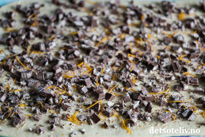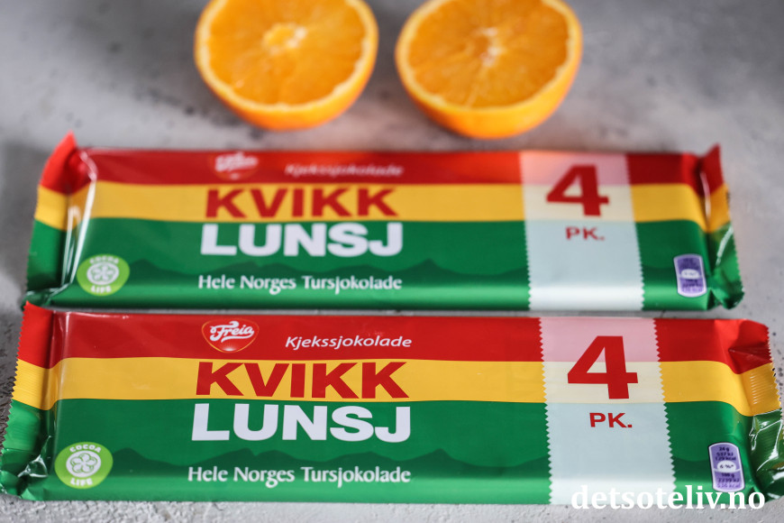 Dryss appelsinskallet over den hakkede Kvikk Lunsj-sjokoladen.