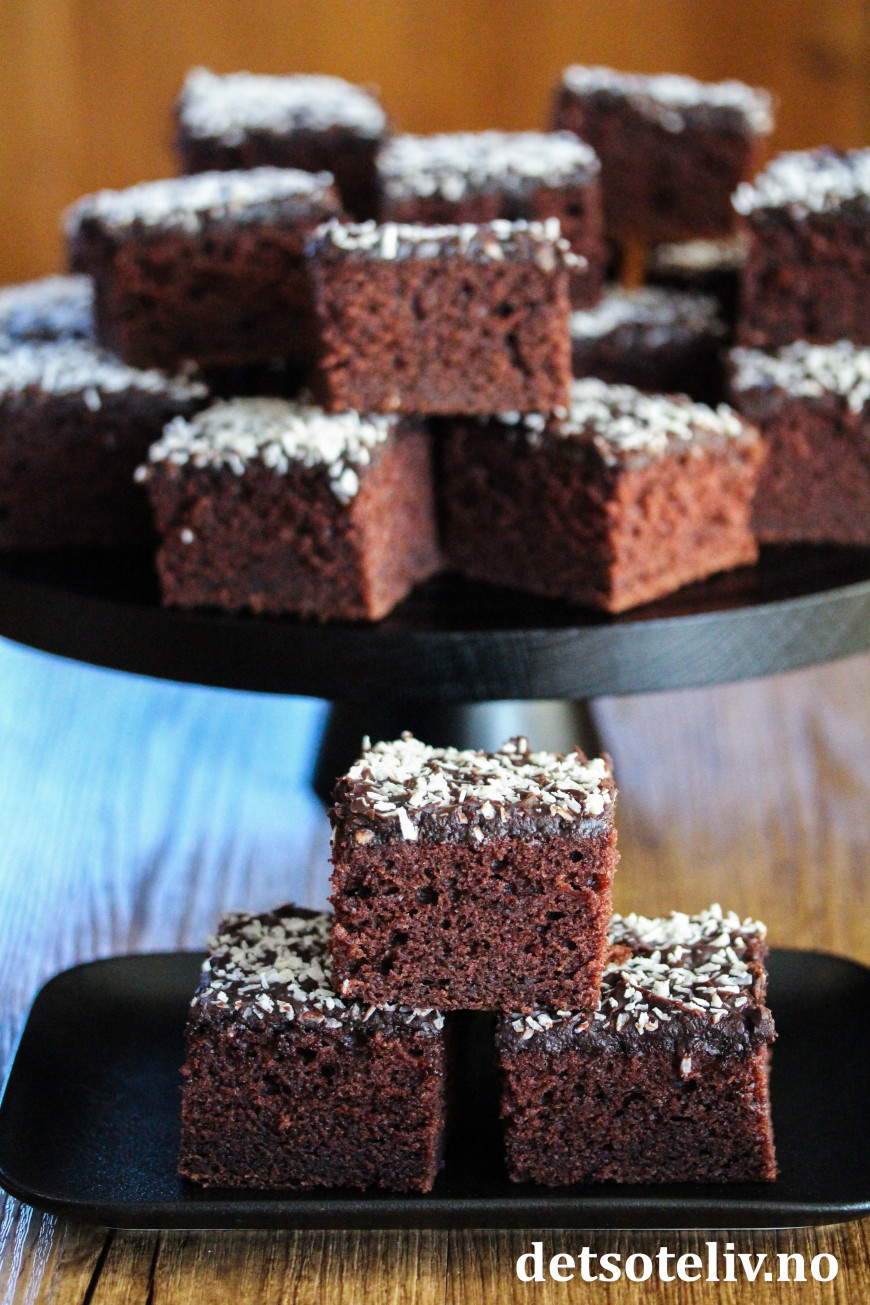 Her har jeg brukt Texas sjokoladekake og Gjennombløt sjokoladekake som utgangspunkt for å lage en ekstra saftig og DIGG versjon.