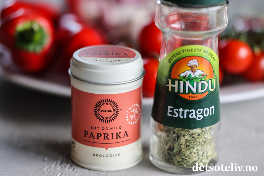 ♥ Tørket estragon og paprikapulver fås kjøpt i de fleste matbutikker. Pass på at du bruker en søt type paprikapulver.