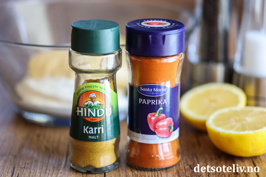 ♥ Karri og paprikapulver gir god smak på denne kyllingsalaten. Jeg synes det passer å holde meg til disse to krydderne.