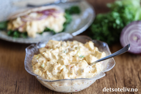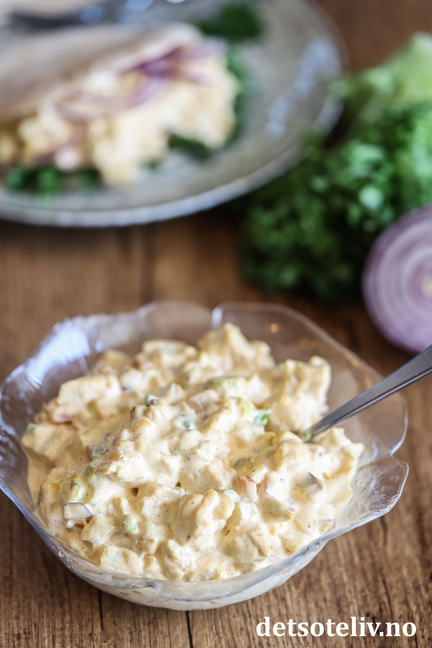♥ Dersom du ønsker salaten litt magrere, kan du redusere mengden majones og øke mengden lettrømme.