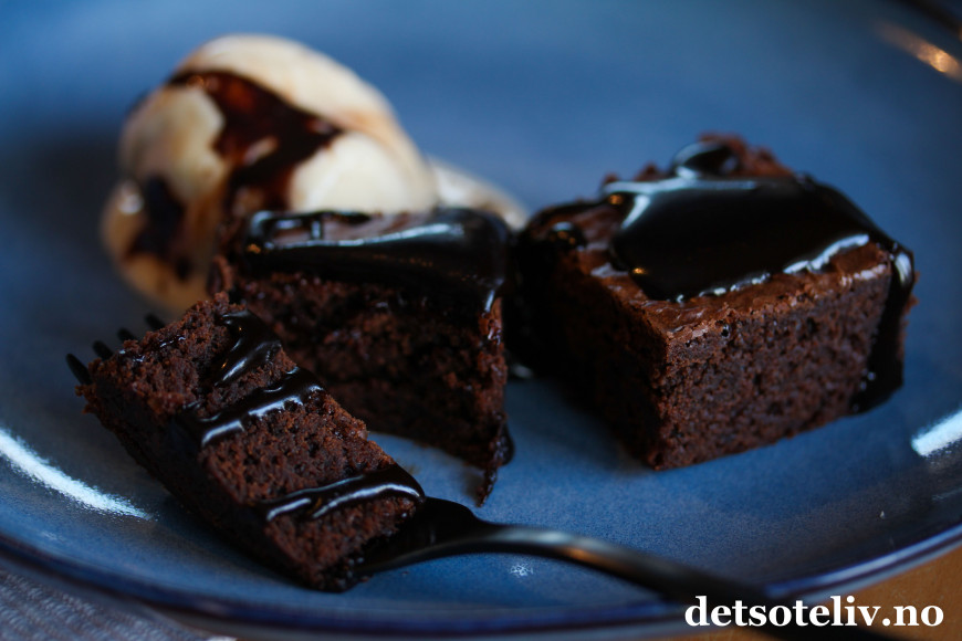 En av disse oppskriftene skal dere få her, og det er bløte Lakrisbrownies med lakrissaus. NAM!