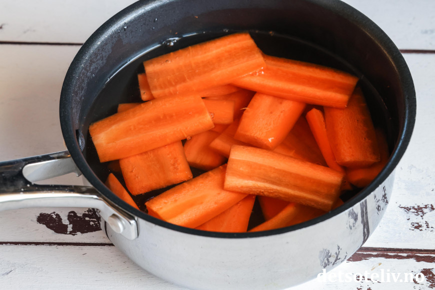 ♥ Du kan gjerne supplere kokte gulrøtter med flere type rotgrønnsaker.