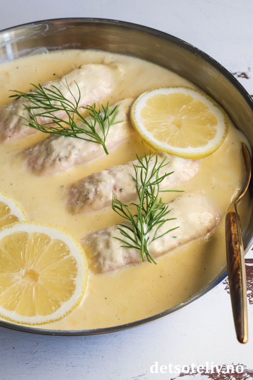Denne retten er så lett å lage og smaker fantastisk godt! Sausen blir fyldig og deilig, og får en akkurat passe mild smak av sitron.