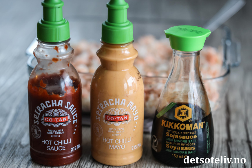 ♥ I stedet for majones og sriracha for seg, kan du bruke ferdigkjøpt chilimajones.