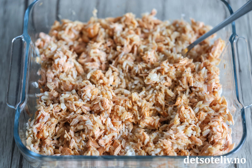 Denne enkle koseretten har gått viralt i sosiale medier, og er en glimrende ting å lage dersom man skulle ha rester av laks og ris. Her blandes kokt laks sammen med ris, og blandingen smaksettes med soyasaus, majones og chilisaus. Dette blir litt som asiatisk barnemat... 😃