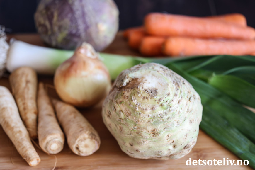 ♥ 7 dl lamme- og grønnsakskraft (se ovenfor)