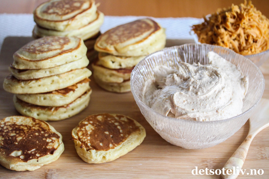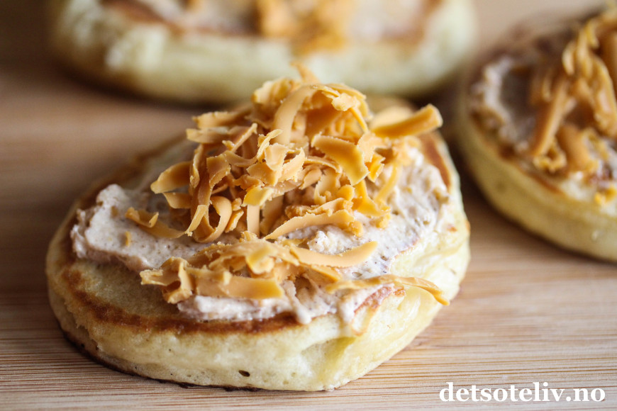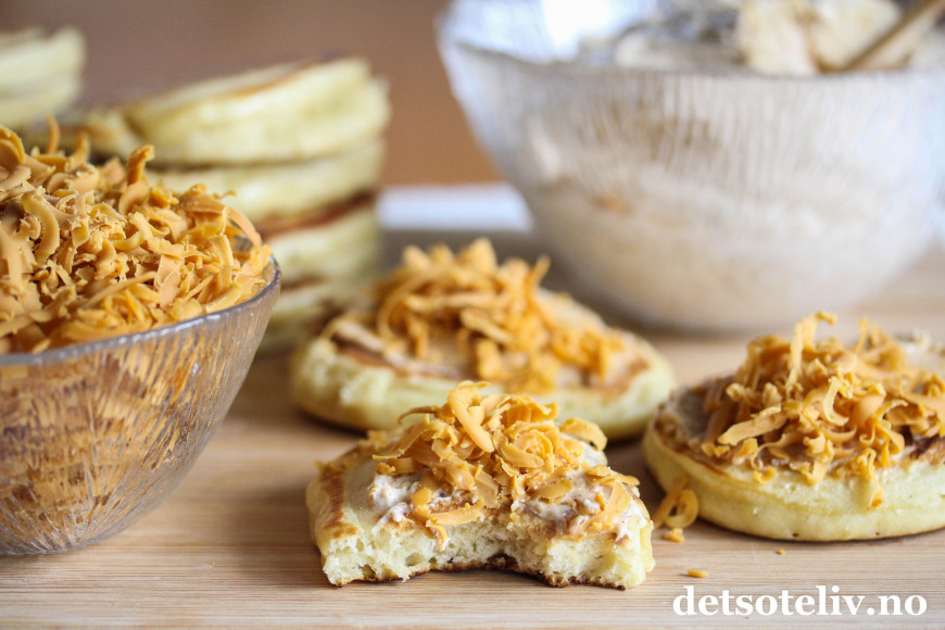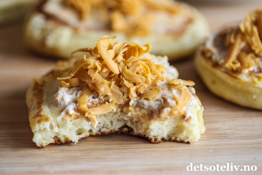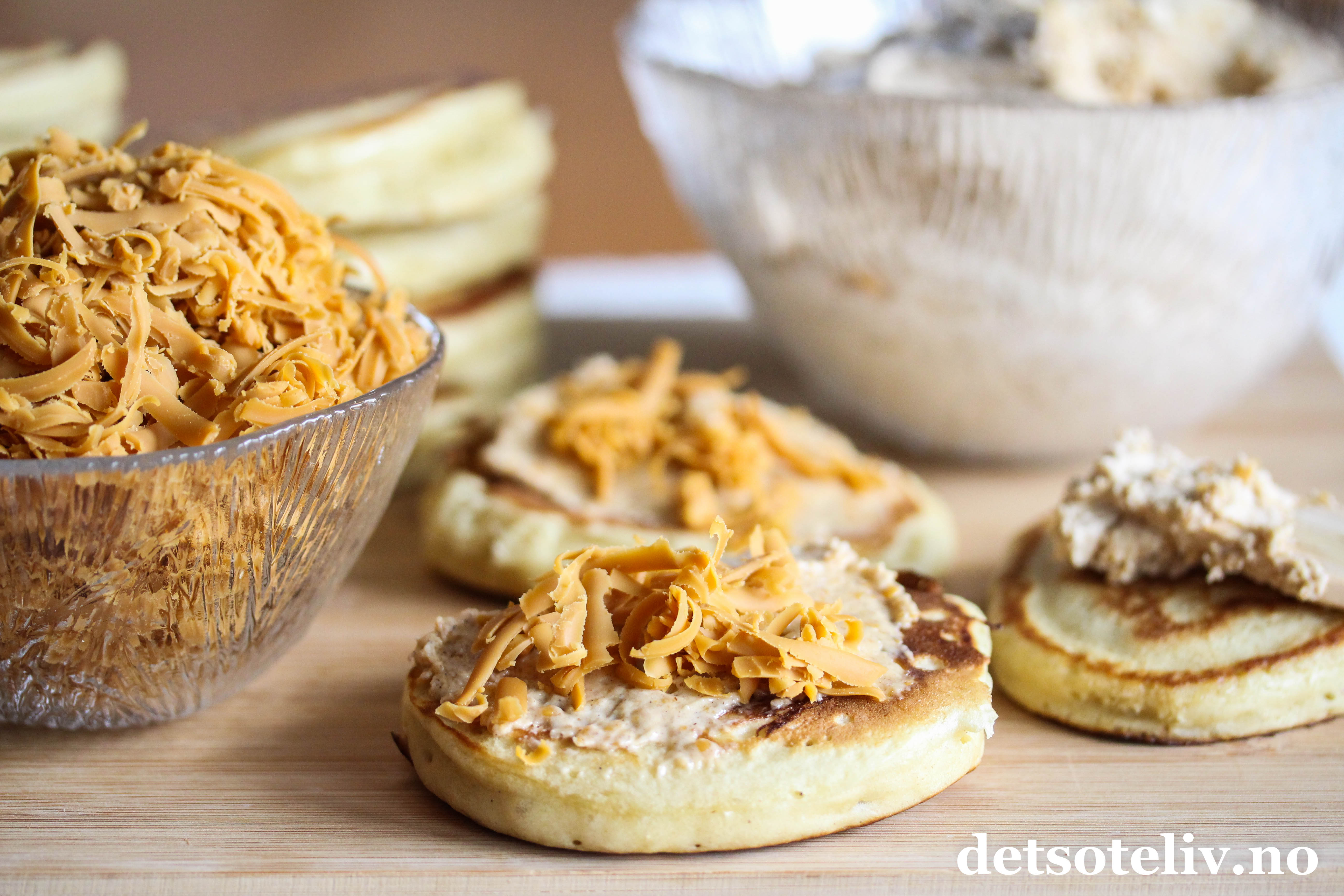 Det klassiske tilbehøret er syltetøy, men prøv dem også sammen med en kremete og deilig brunostkrem. "Brunostkrem" høres kanskje litt gammeldags ut, og som hentet rett ut fra bondelandet, men legg fordommer til side og prøv!