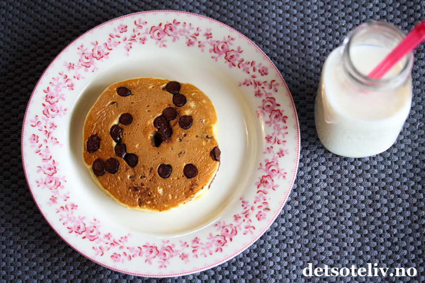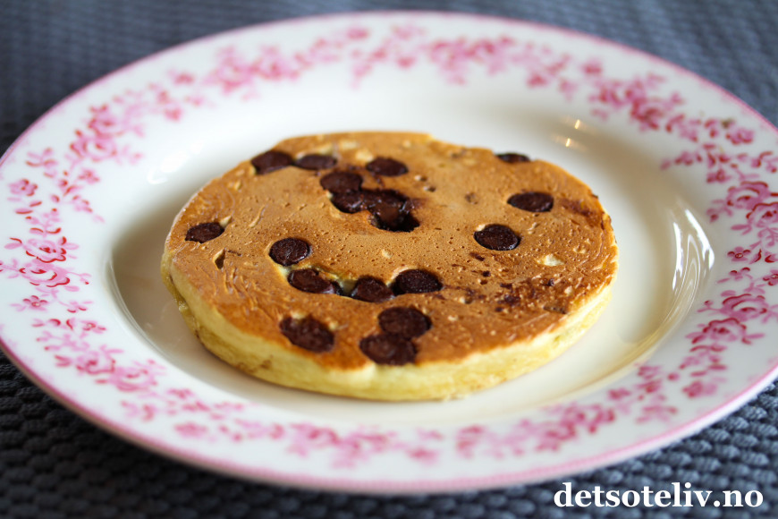 Legg opp til å steke 3-4 lapper om gangen. Dryss på litt ekstra sjokolade mens lappene steker på den ene siden.