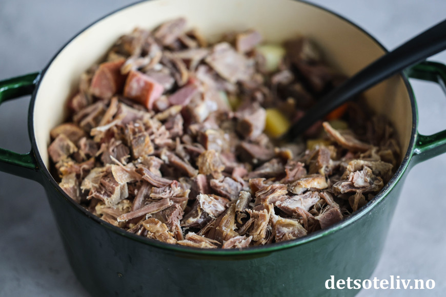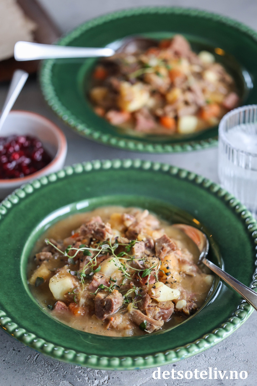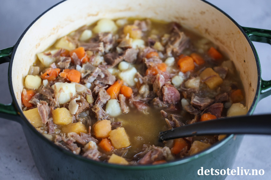 Lapskaus med pinnekjøtt får kjempegod smak!