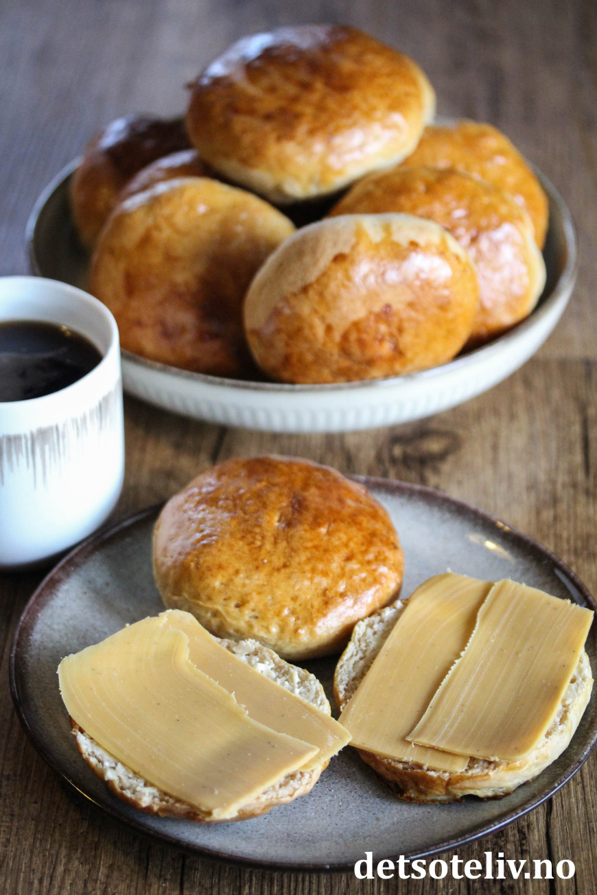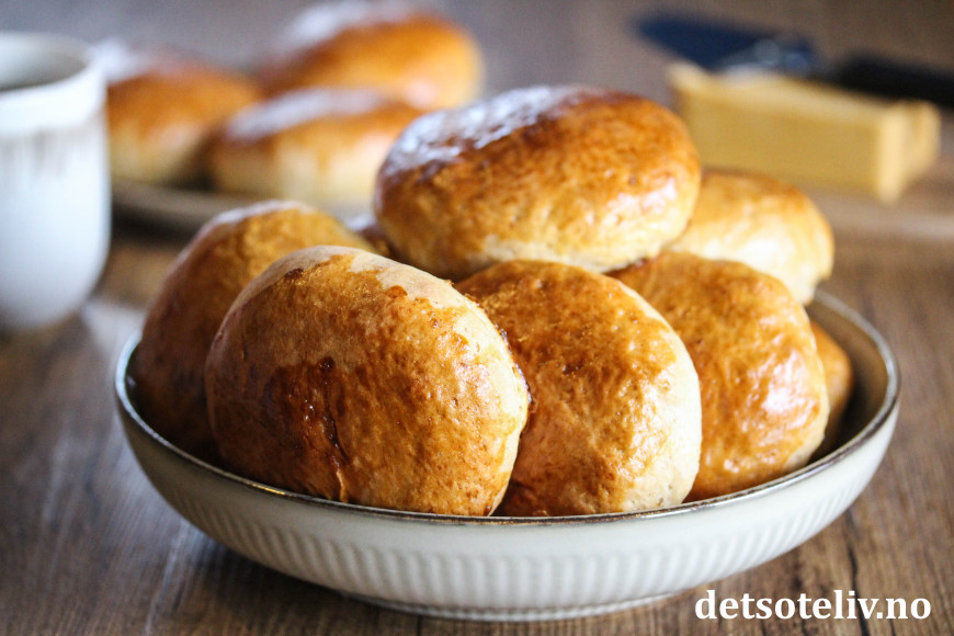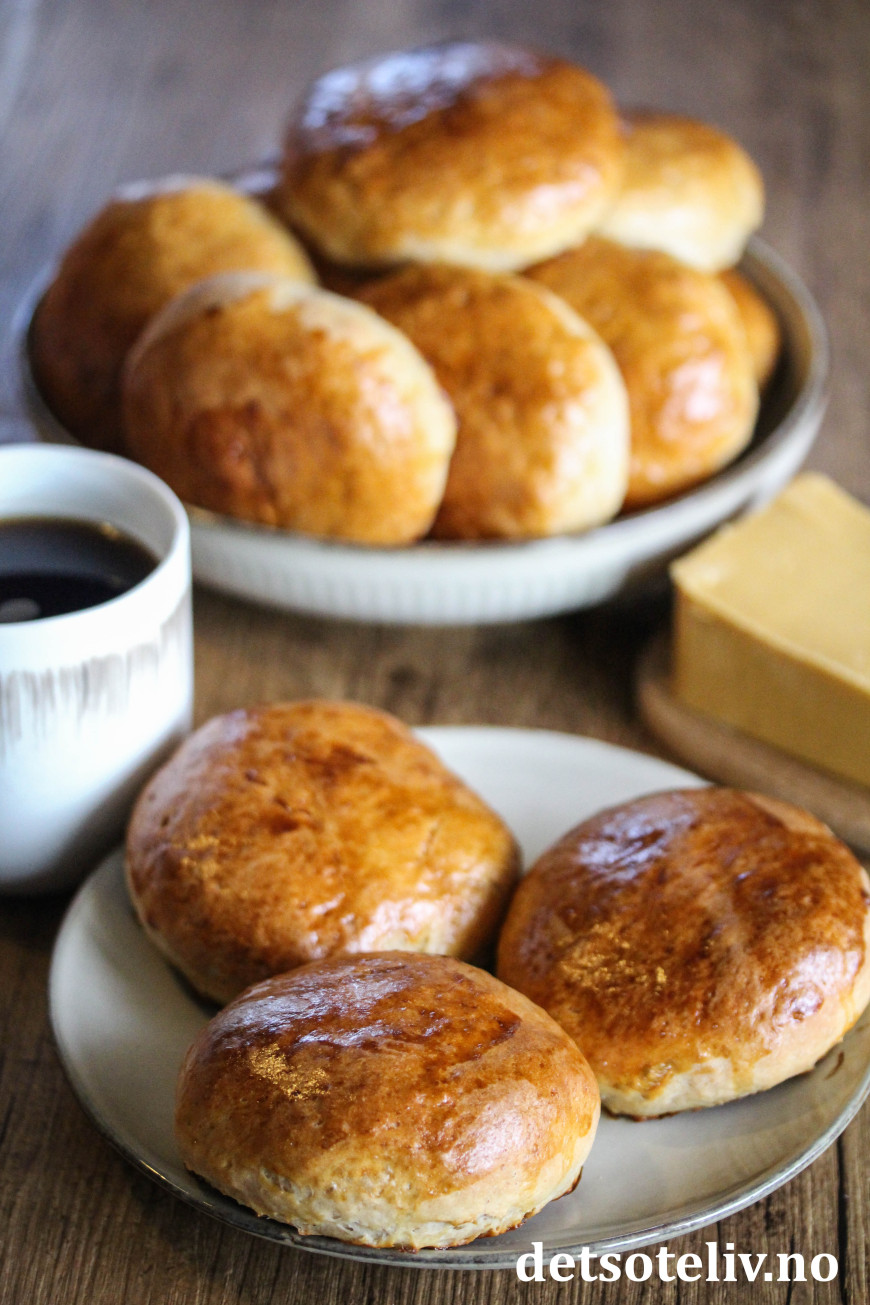 ♥ Se også oppskrift på Sirupsboller og  Laup (boller fra Trøndelag) som lages med sukker.